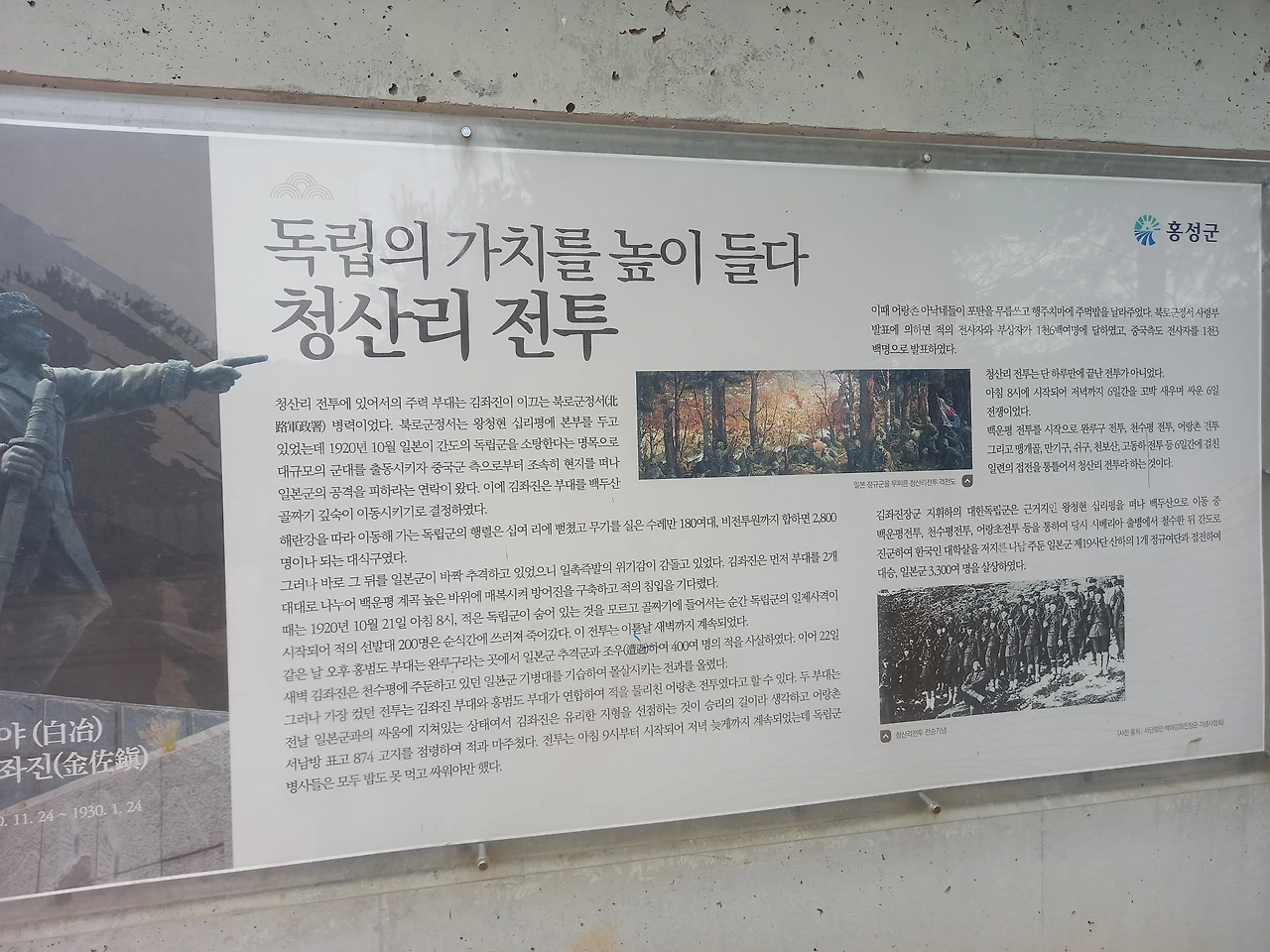 백야공원에는 김좌진장군의 항일투쟁의 기록과 동상들이 세워져 있다. 낱낱이 다 읽어보지는 못해서 사진에 담아온다.