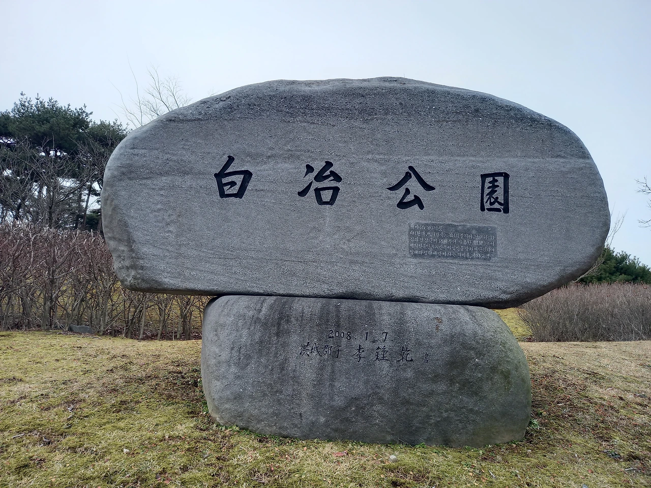 주차장에 내리니 '백야공원'이라는 돌비가 우리를 맞는다. 백야'는 김좌진장군의 호인데, '백의만족의 백'자에 '쇠벼릴, 두드릴 야'자를 써서 굽힘 없이 잘 단련된 우리 민족을 상징한단다.