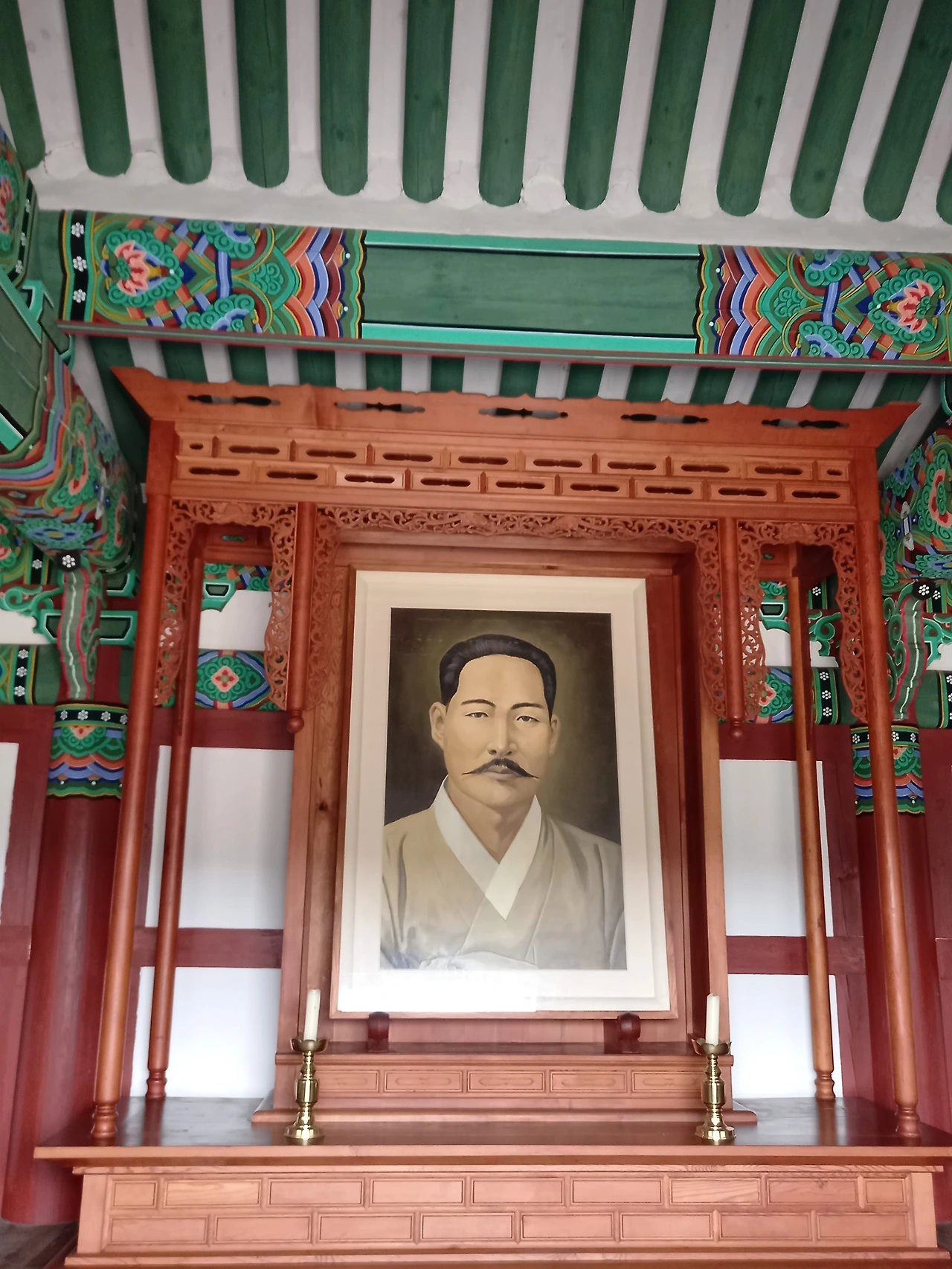 김좌진장군 사당에서 영정 초상화를 보고 내려온다. 방명록에 이름을 적고 향을 피워 김좌진 장군을 추모하는 이들도 있다. 나는 기독교인이어서 생략하고 잠시 기도한다.
