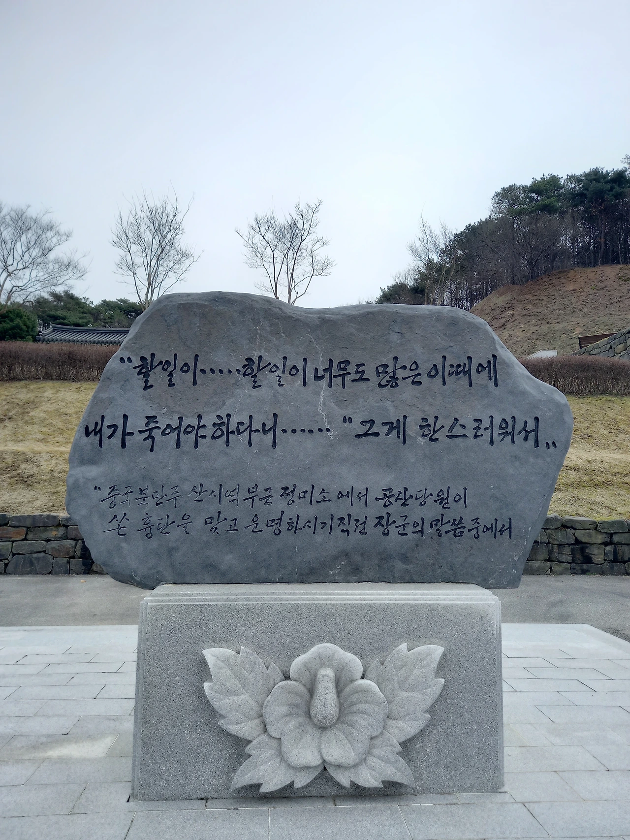 아래 주차장으로 내려오니 김좌진 장군이 마지막으로 남긴 말씀이 돌비에 새겨져 있다.