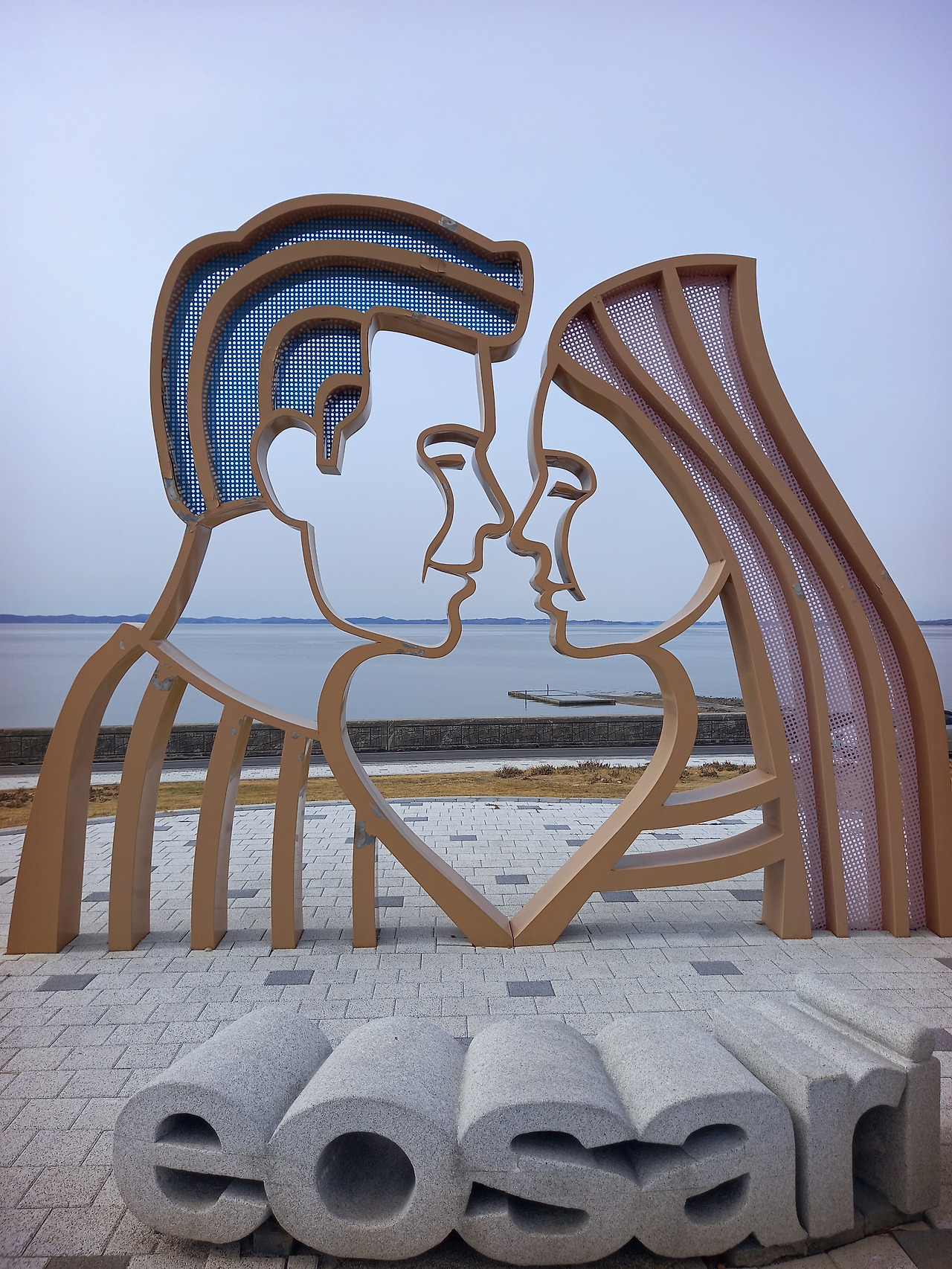 어사리 노을공원에는 남녀가 얼굴을 맞대고 정겹게 있는 포토존이 있다. 제목은 <행복의 시간>이란다. 고기가 많아서 어사리이고 노을이 아름다워서 노을공원이란다. 이곳은 석양에 와야 제 맛을 볼 수 있는 곳이지만 우리는 낮에 와서 아쉽다.