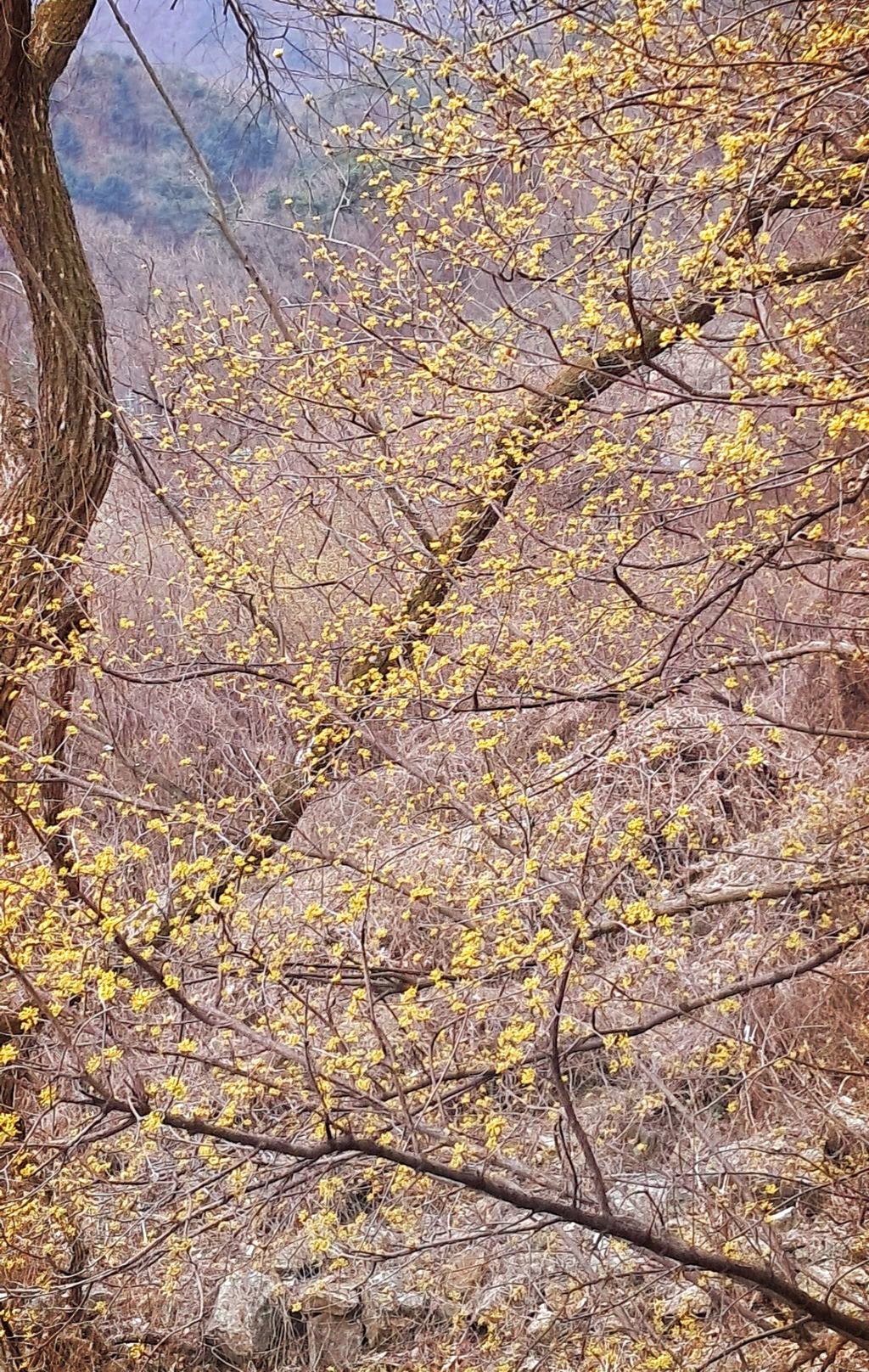 꽃이 조금 피었을까? 요즘 날씨가 따뜻하니까 꽃 탐을 할 수 있으리라 기대를 해본다. 어제도 도서관 앞에 보니까 노오란 산수유꽃이 만발하였다.