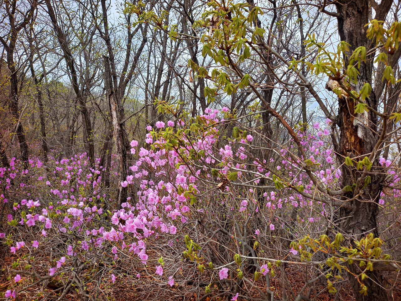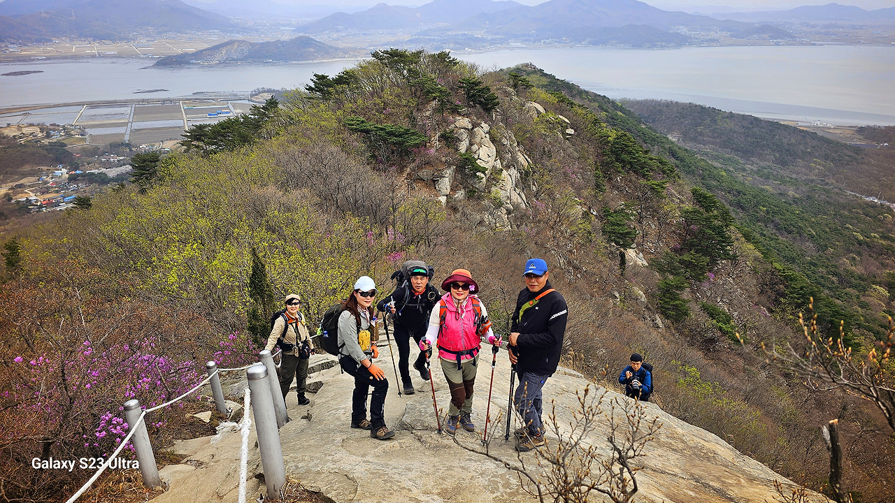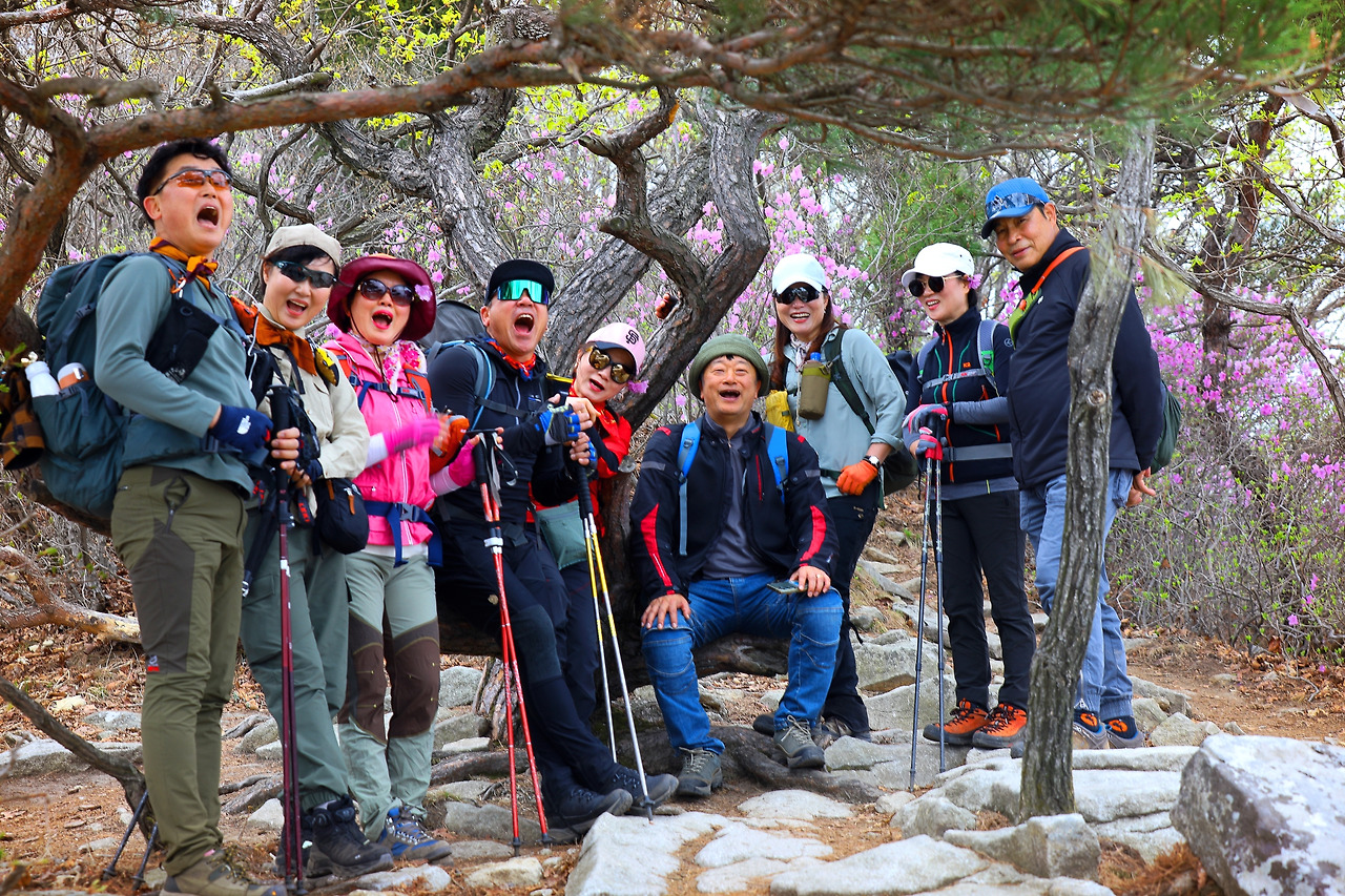 미세먼지에 하늘이 뿌해서 배경이 그리 푸르지 않은 것만 빼면 모든 것이 다 만족스러운 산행이다. 날씨와 조망과 진달래꽃 개화 상태와 산행 난이도와 참석 인원 등이 조화로워서 오순도순 걷기에 안성맞춤이다.