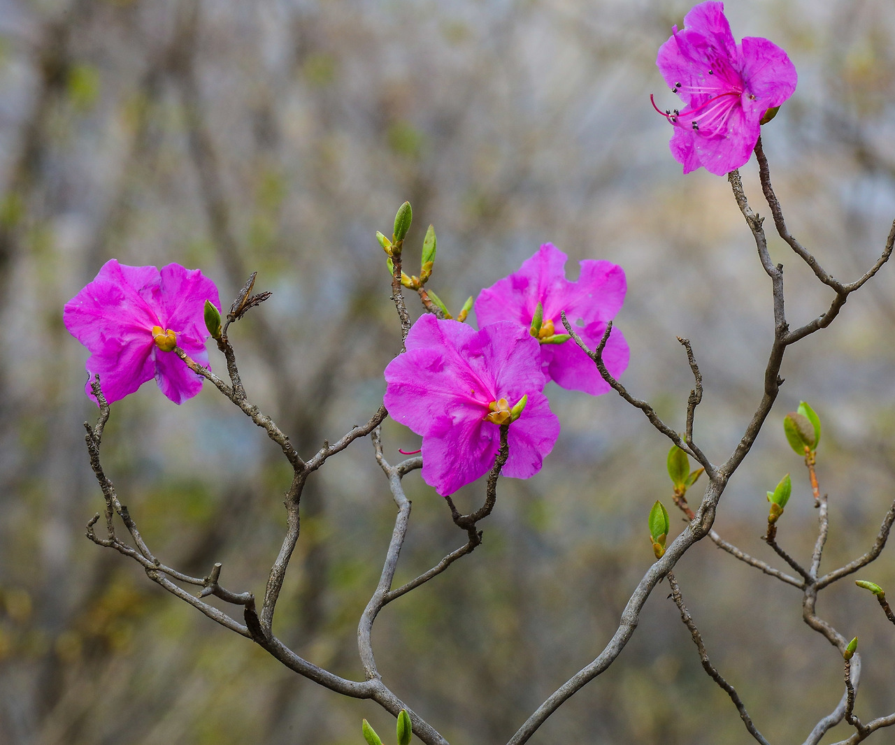 황매화, 철쭉, 조팝나무, 명자나무, 정향나무, 아직 초록물이 안 오른 갈색 풀까지 다!