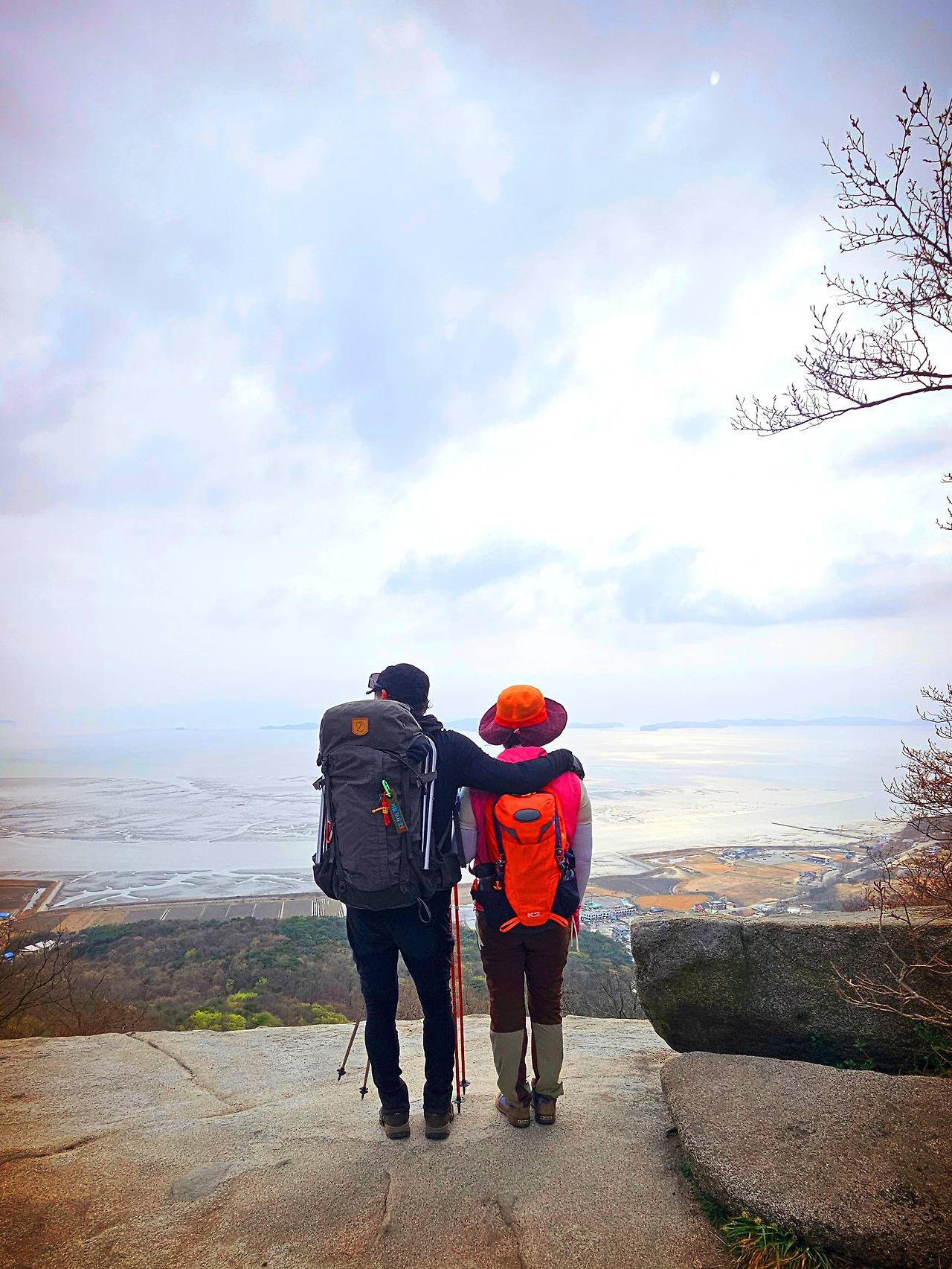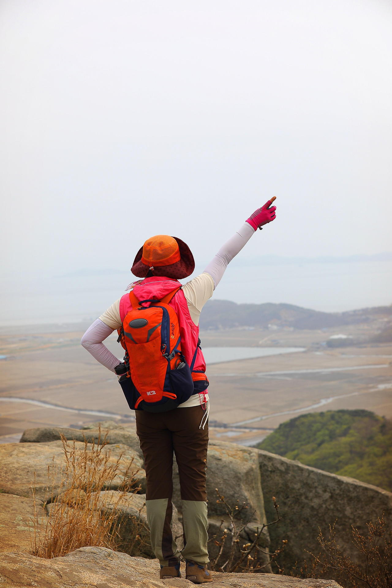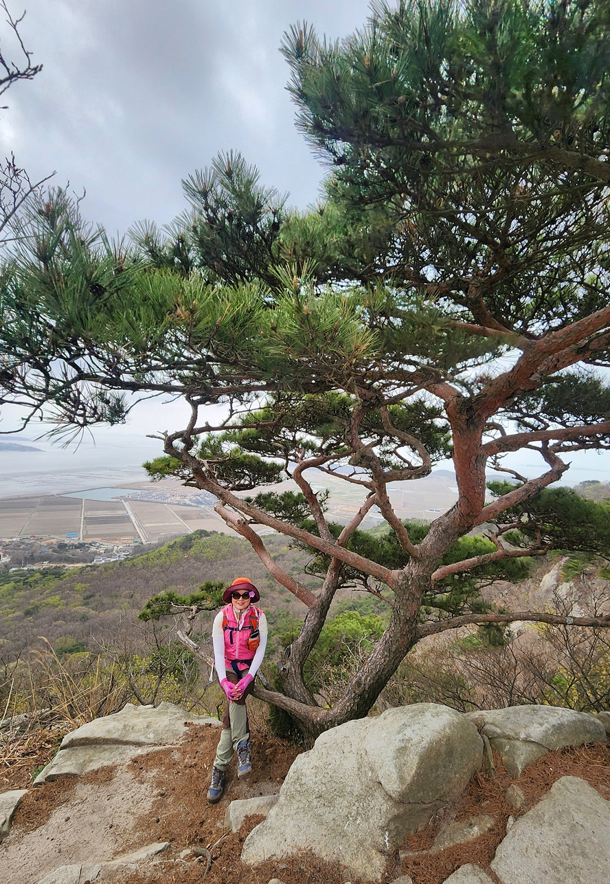 그렇지만 하산길에는 또 암릉 타는 재미에다 지나온 해명산 정상 쪽 길, 가야 할 길, 어쩌면 못 갈 수도 있는 상봉산 봉우리 쪽 조망에 무엇보다 탁 트인 서해바다까지 우리의 발걸음을 자꾸만 붙잡는다. 정서진님과 머털도사님, 제니동님, 호타루님은 정성스레 사진을 찍어주시고, 우리는 어떤 포즈로 설 지가 고민이다.