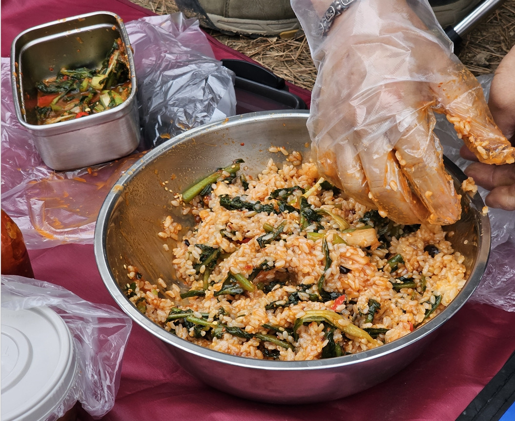 음식재료에다 사온 음식, 만들어온 음식, 그리고 양푼까지 가방에 싸들고 온 해늘님들의 수고에 그저 고개가 숙여질 뿐이다. 언제나 해늘산행은 멋에다 필히 맛도 어우러지는 특별한 산행이다. 거기다가 차량 3대로 머털도사님, 장비님, 에라이님 발 봉사까지 해늘님들의 섬김에 감사하며 모두 복 많이 받으시라고 빌어드린다.