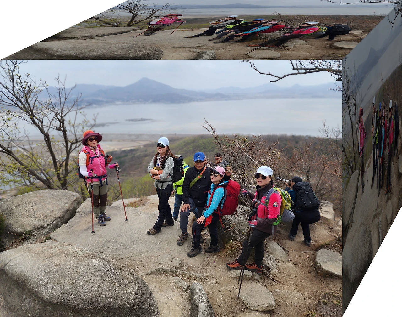 좋은 포토존에서는 단체사진도 열심히 남긴다. 그래서 그런지 전체 산행 속도가 더디다. 에라이님은 우리들 중에서는 젊은 데다가 사진도 많이 안 찍고 휙휙 걸어서 산행속도가 빨라 단체사진에서 빠진 경우가 있다. 앞서가서 기다려주고 또 한참 가서 서 있곤 한다. 조금 지루하지 않았을까 싶다. 산행 경력이 거의 30여 년이 넘는 베테랑이라는데 말이다.