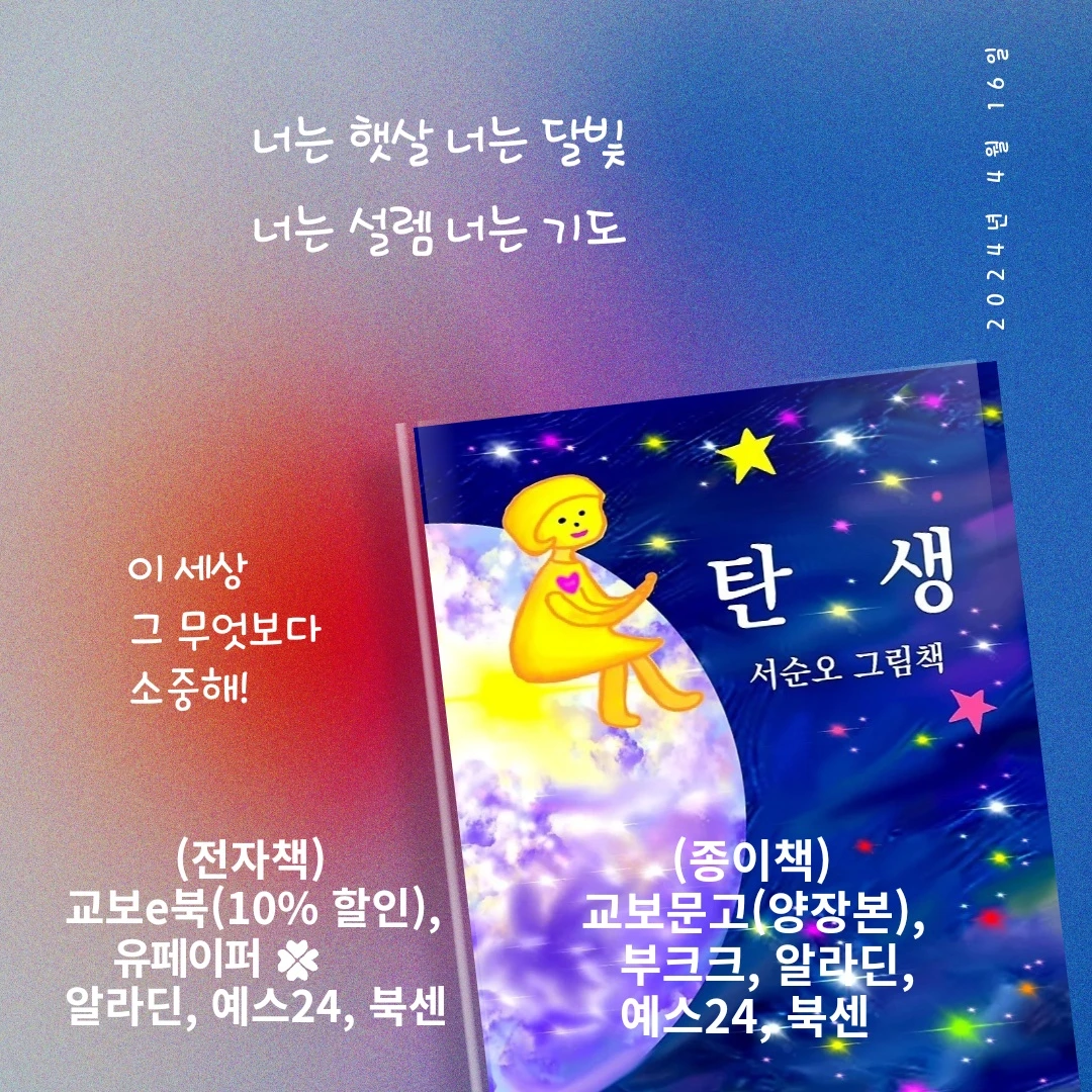 그림책 <탄생> 전자책을 내고는 종이책도 출간하였다. 아이패드로 그렸는데, 손으로 그린 것과는 또 다른 맛이 있다.