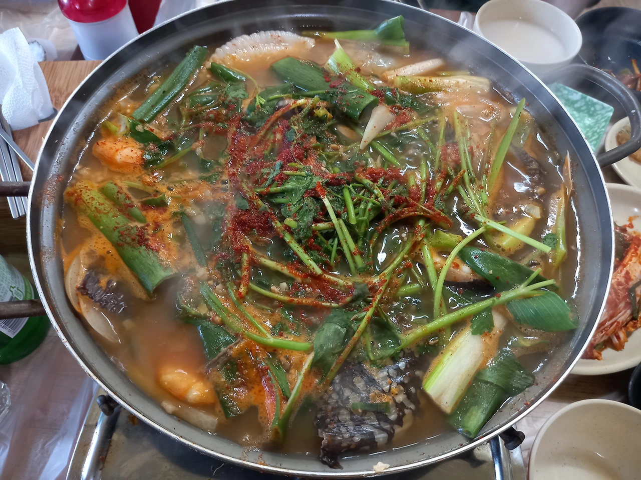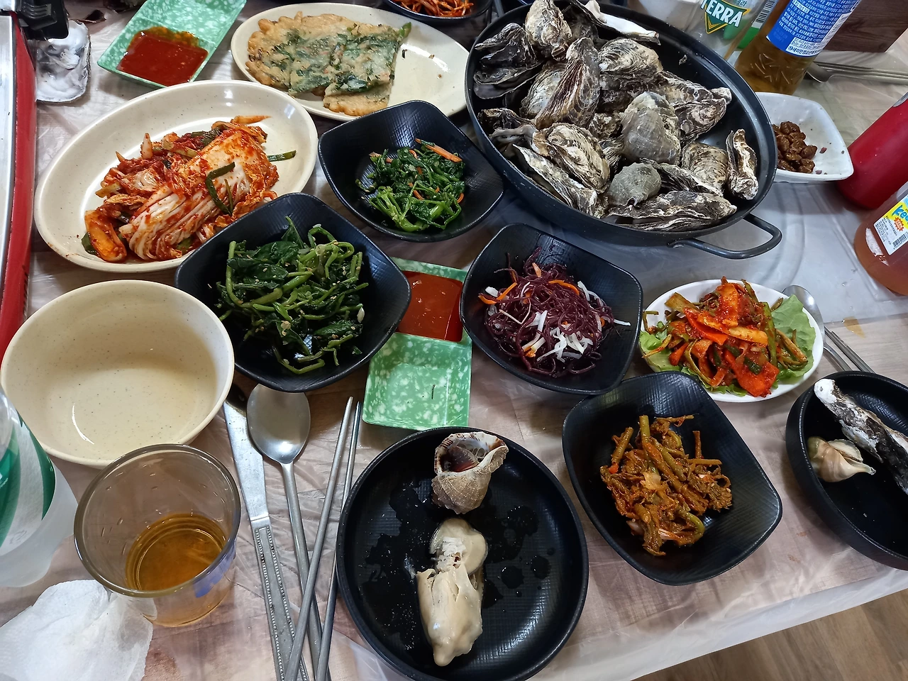 오서산 산행 후에는 남당항에 들러 맛있는 굴찜과 소라, 매운탕으로 뒤풀이를 하는데 이 집 반찬들이 모두 맛있다. 원래 들르기로 한 낙조전망대는 시간관계상 지나만 간다. 내려올 때 차가 많이 막혀서 1시간 산행을 늦게 시작했고 귀갓길에도 교통체증을 염두에 두어서이다.