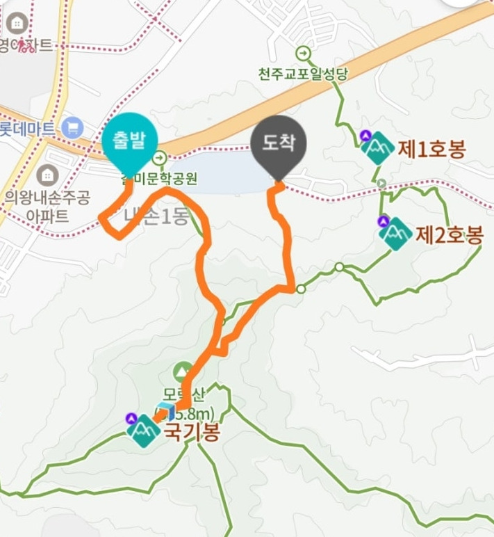 블랙야크 100+ 명산 인증이 되는 국기봉을 가려면 '모락산 국기봉'을 쳐야 거리와 시간이 제대로 나온다.