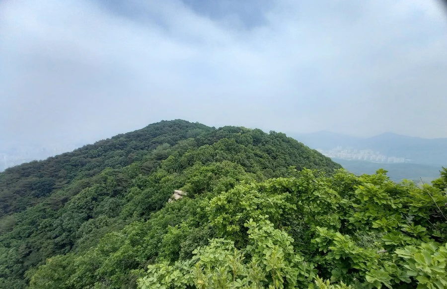 조망도 하나도 없다. 오를 때 가파른 길로 오르길 잘했다. 그곳은 군데군데 조망이 좋기 때문이다.