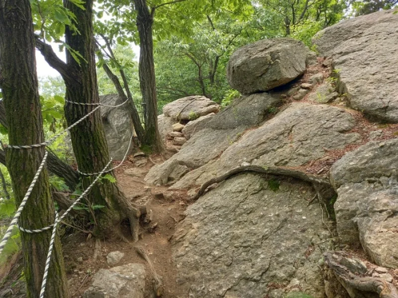 하산할 때는 한글갈미공원에서 바로 모락산 오르는 길로 왔는데, 거기서 오르는 길이 조금 더 편한 길 같다. 그렇다고 완만한 길은 아니고 거기도 오름길이 계속 이어진다. 그런데 그 길로 가면 사인암은 못 들르고 바로 팔각정 쪽으로 갈 수 있다.