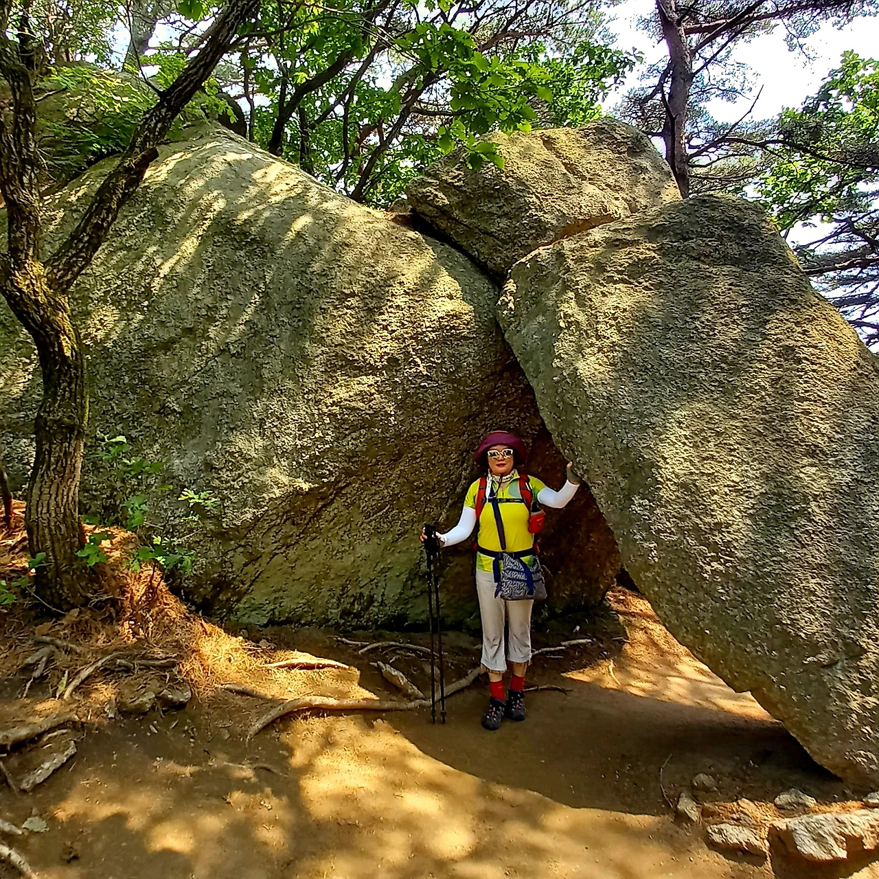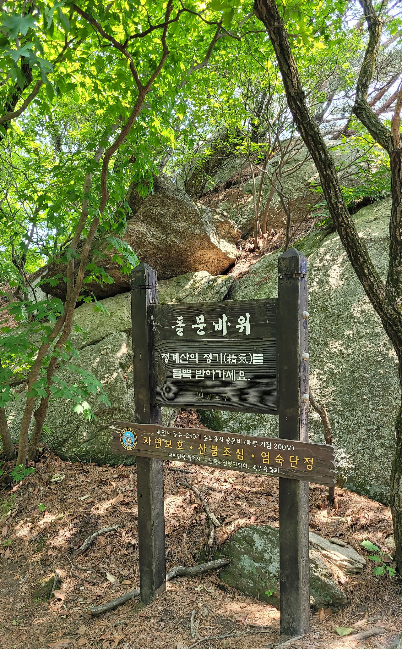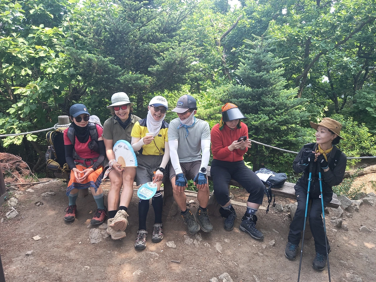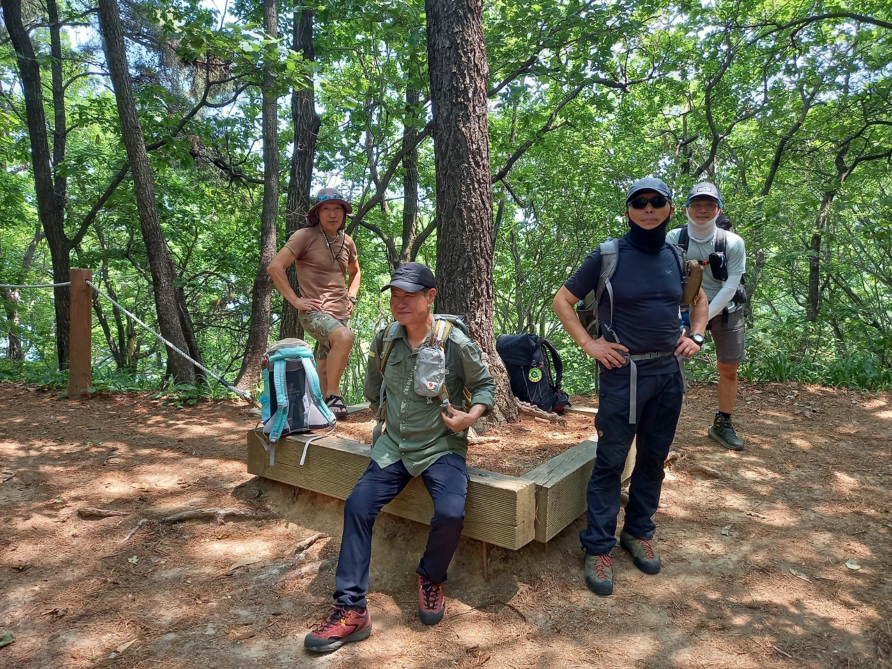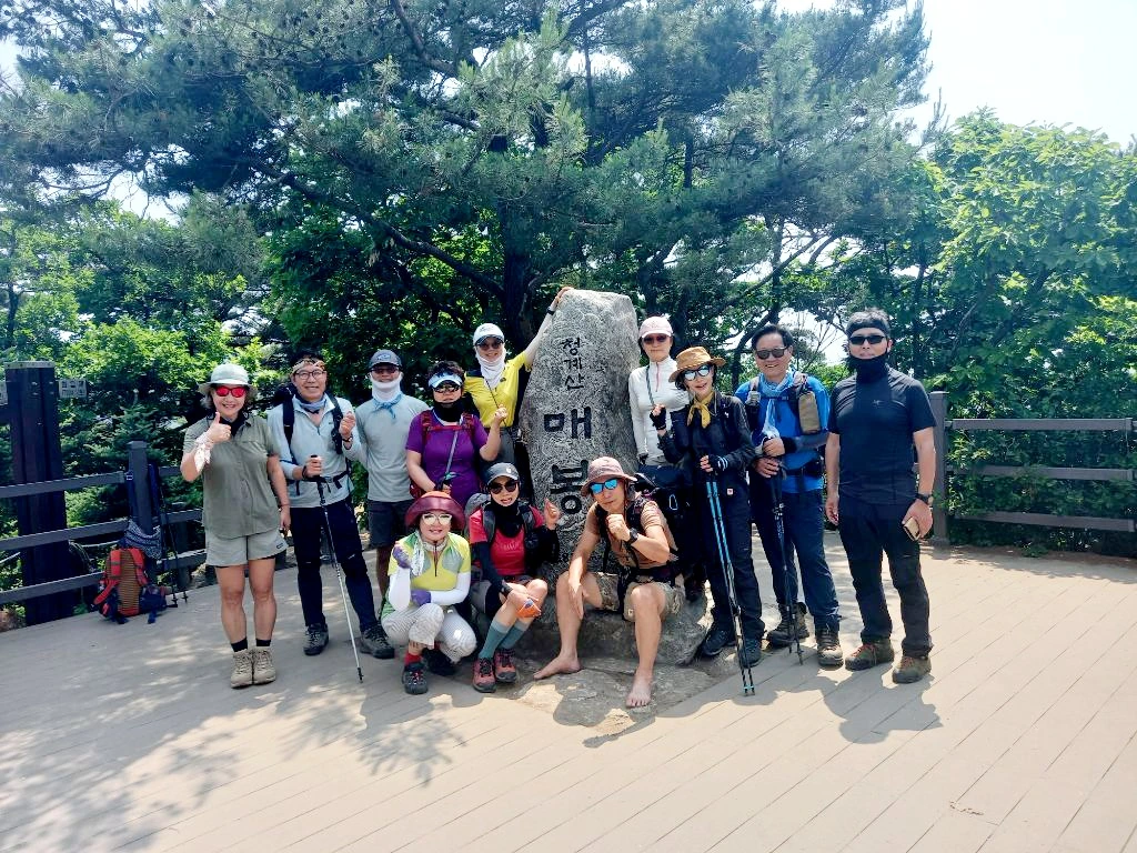 이제 본격적인 산행을 시작한다. 올 들어 제일 더운 날이어서 땀을 많이 흘린다. 올라갈 때부터 처음 계획했던 산행길이 땡볕 급계단길이라 살짝 우회해서 그늘길로 인도한다. 매바위, 매봉 찍고, 단체 기념사진을 남긴다. 함께 한 대장님들과 산우님들은 무척 빠르시다. 오름길에서는 리딩하는 나보다 훨씬 앞서가신다.