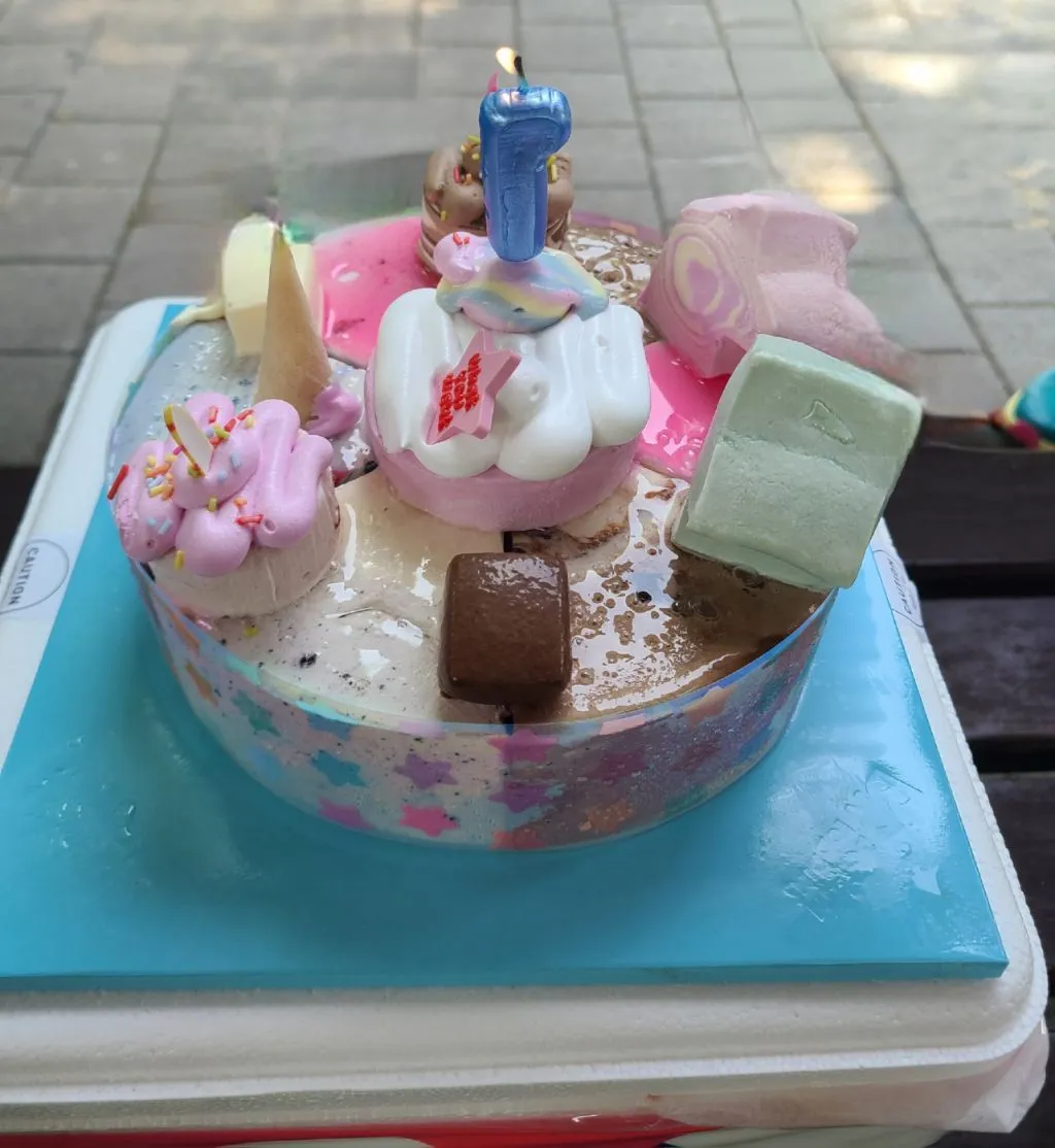 코스모스 대장 등극 산행은 오전 11시 청계산입구역 2번 출구에서 만났다. 주차장으로 올라와 정자 쉼터에서 시원한 아이스크림 케이크를 준비해 오신 애봉이 대장님 사회로 간단하게 등극식을 했다. 서로 소개 인사를 하고, 약소하게 준비해 간 선물을 드리고, 산행을 시작한다.