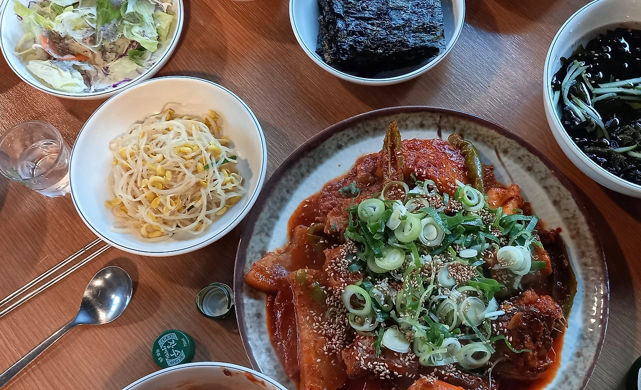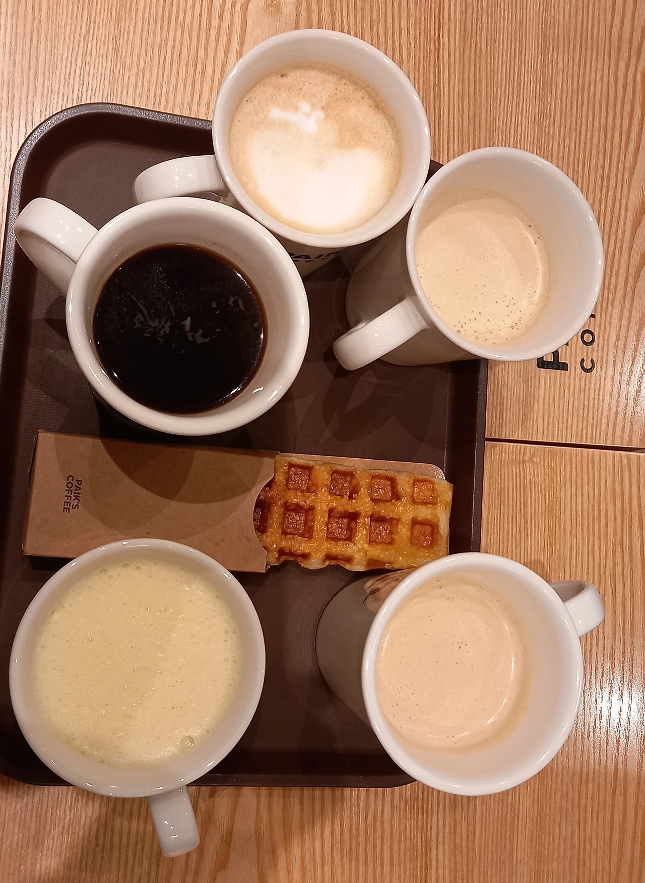 안양예술공원 내 <쭈꾸미식당>에서 코다리찜과 갑오징어볶음으로 이른 저녁식사를 하고, <빽다방>에서 커피와 고구마라테와 파이로 후식타임을 가진다. 인테리어 대장님 리딩 산행에 맛과 멋의 기쁨이 가득하다. 이런 게 바로 행복이라는 거다.