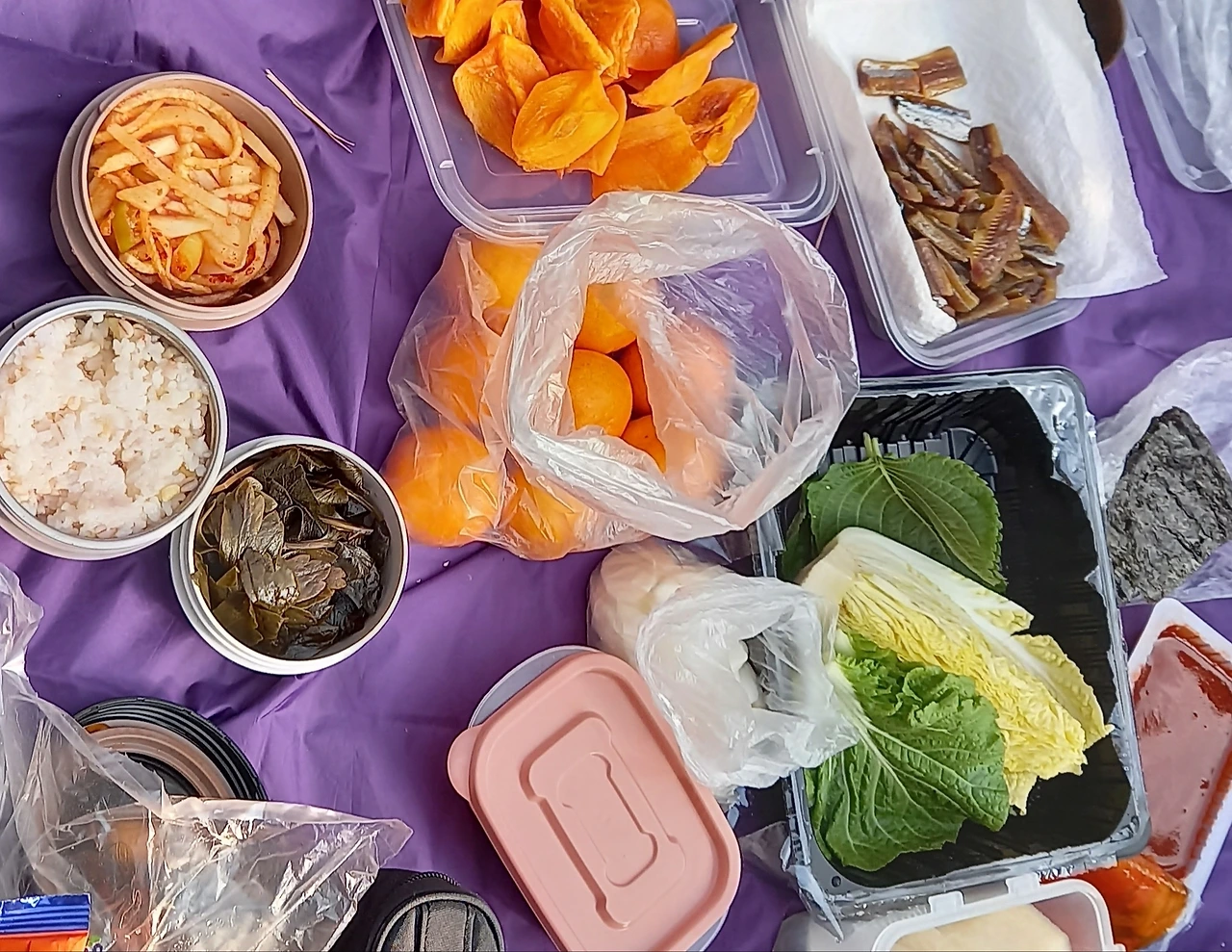 점심은 산행 시작해서 30여 분 오른 후 낮 12시에 먹는다. 따뜻한 밥터에서 돗자리를 깔고 쉘터를 두르고 오손도손 앉아서 거의 1시간 정도 시간을 보낸다.