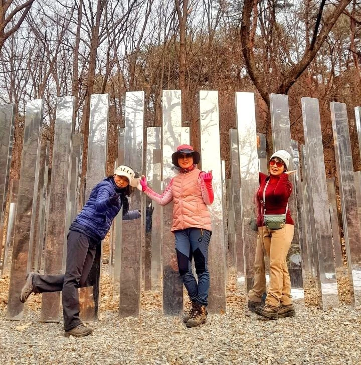 안양예술공원 <거울 미로> 작품에서 한참 놀다 간다. 안으로 들어가 걸으니 빙글빙글 어지럽다. 여자 셋이서 예쁜 사진을 남긴다. 더 내려오니 2023년 새해와 지난 해 성탄장식이 화려하다. 2023년 이름표와 성탄 트리, 꽃아치문, 보라별, 천사날개가 그냥 가면 안 된다고 손짓을 한다. 또 한참 놀면서 걸어간다.