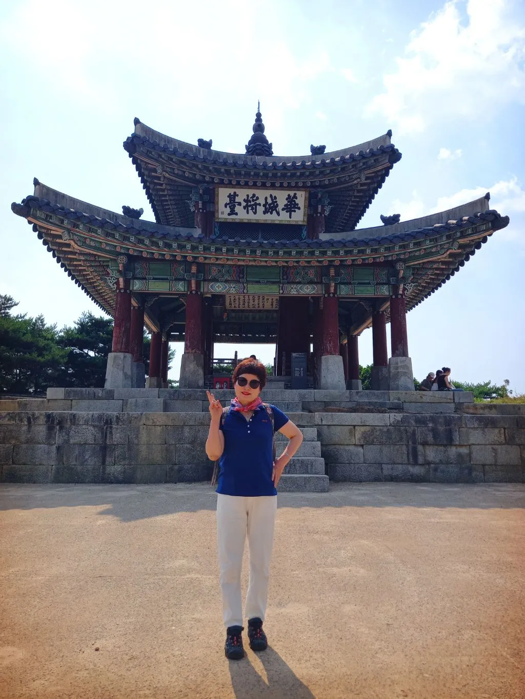 외국인 커플들이 서장대에서 수원화성과 수원시내를 조망하며 즐기고 있다. 날씨가 아주 맑아서 하늘에서 푸른 물이 뚝뚝 떨어질 것 같은 깨끗한 청빛이다. 흰 구름 두둥실 떠간다. 청과 백의 조화이다. 우리 민족은 유난히 청색과 백색을 좋아한 것 같다. 청자 백자도 만들어서 사용하고 또 흰옷을 즐겨 입었으니 말이다.