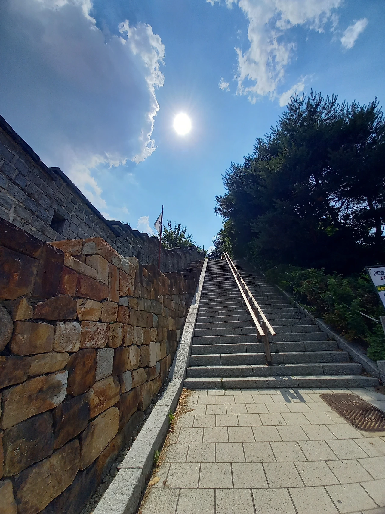 초반에 가파른 계단 오름길이라 땀 좀 흘렸다. 성곽길 능선으로 들어서니 바람이 서늘하게 불어서 느릿느릿 사색하며 걸었다.