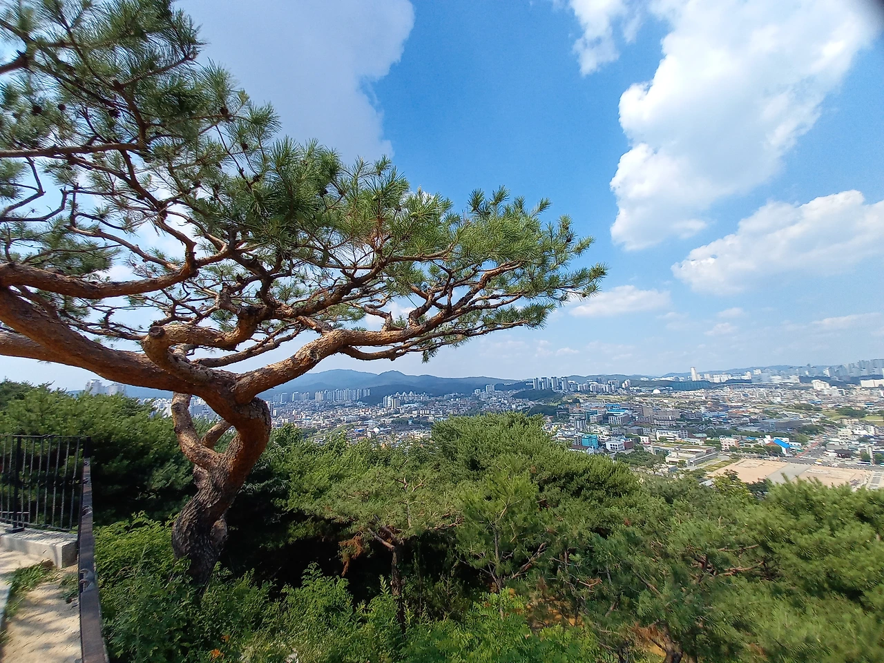 서장대 앞쪽으로는 휘어진 노송이 수원화성행궁과 수원시내를 내려다보며 의연하게 서 있다. 나도 한껏 눈과 마음을 맑게 하고 소나무의 자세로 내려다본다.
