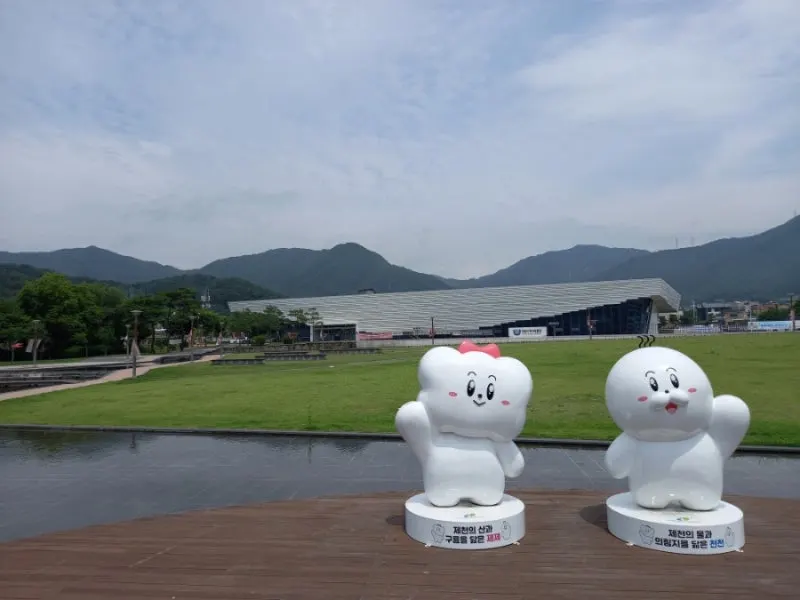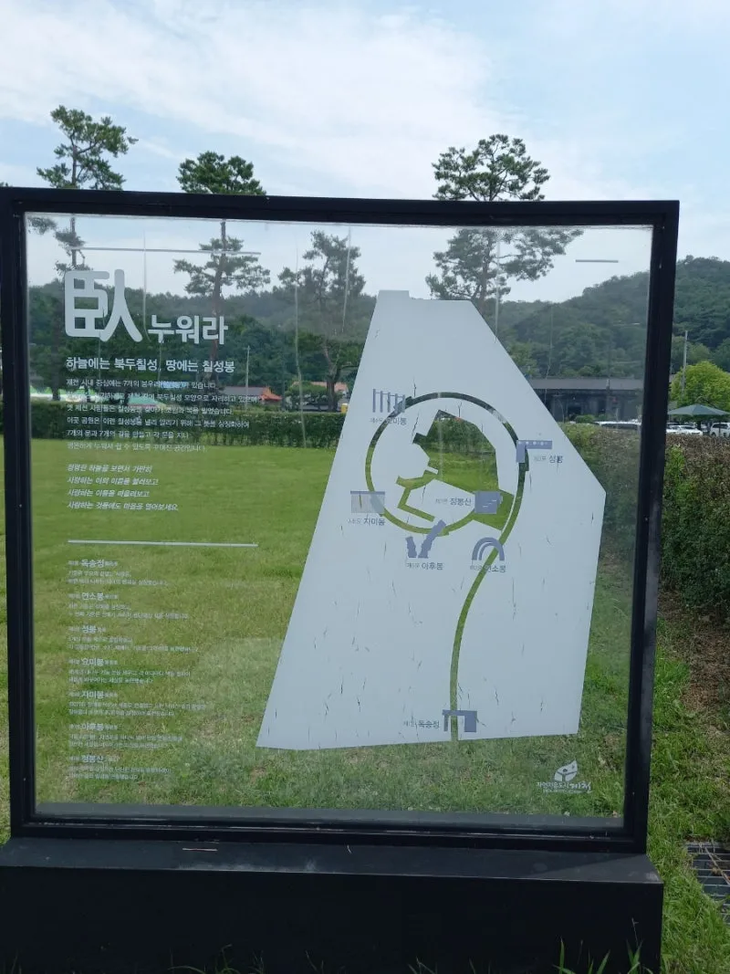 의림지 역사박물과 뜰에는 멋진 장식이 많다. 무자위. 고인돌, 제천의 캐릭터 등 하나하나가 다 포토존이다. 나는 의림지를 반바퀴 정도 돌아보고 다시 역사박물과 뜰의 누워라 와 정원을 돌아본다. 제천이 7개의 성으로 구성되어 있다는 설명이 있다. 천천히 걸으면서 감상을 한다.