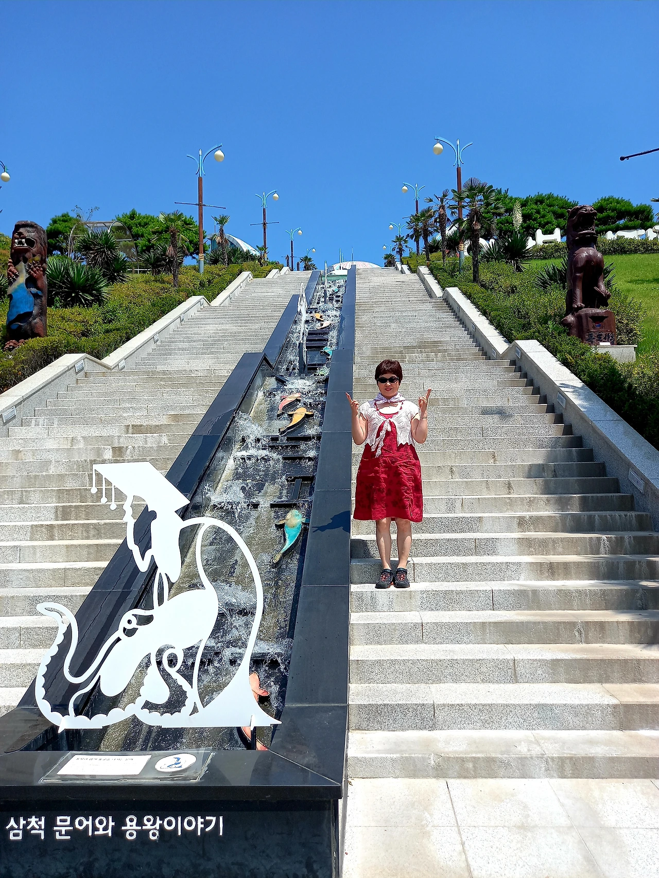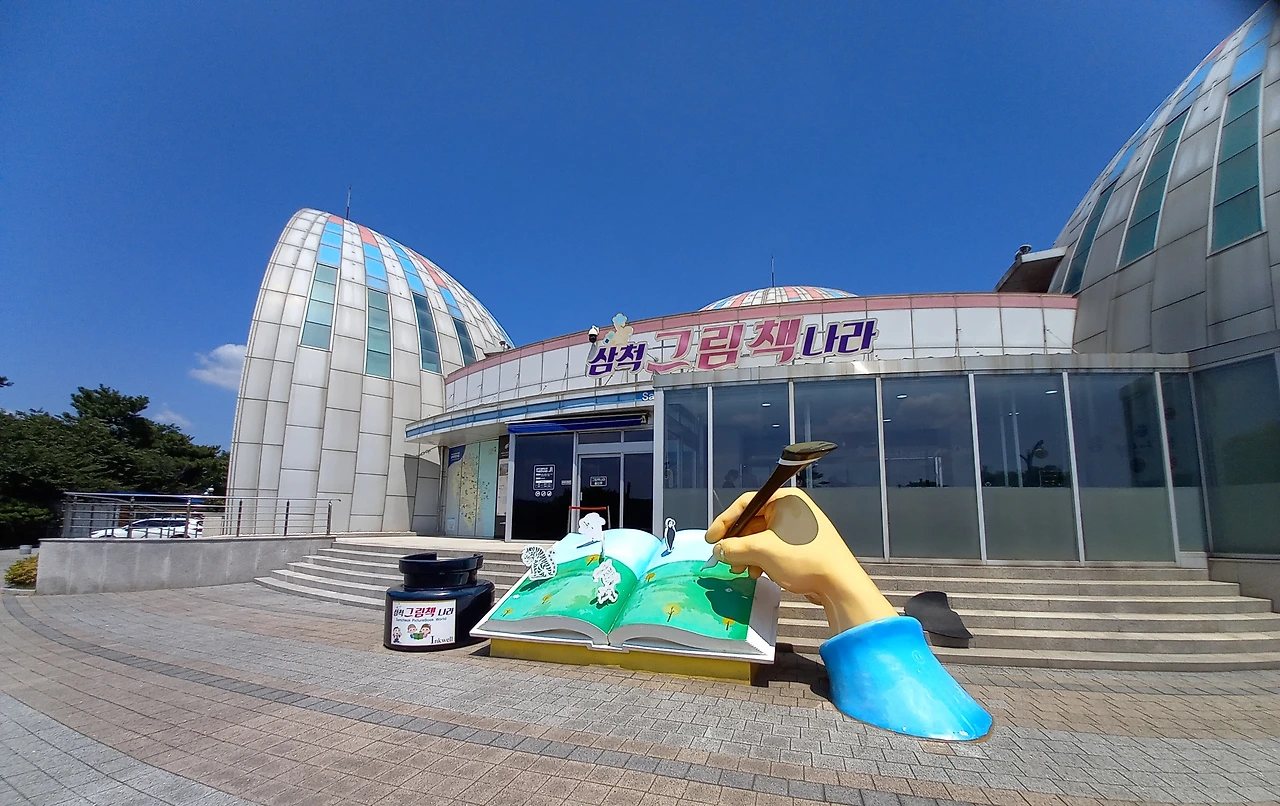 날은 덥지만 바닷바람은 시원하다. 데크길 내려가 여유 있게 돌아보고 올라오는데 이사부공원 전시관에 <삼척그림책 나라> 전시회가 있는 모양이다. 잠시라도 둘러보고 싶어서 들어가니 낮 12시~오후 1시까지는 점심시간이란다. 문이 잠겨서 못 봐서 아쉽다.