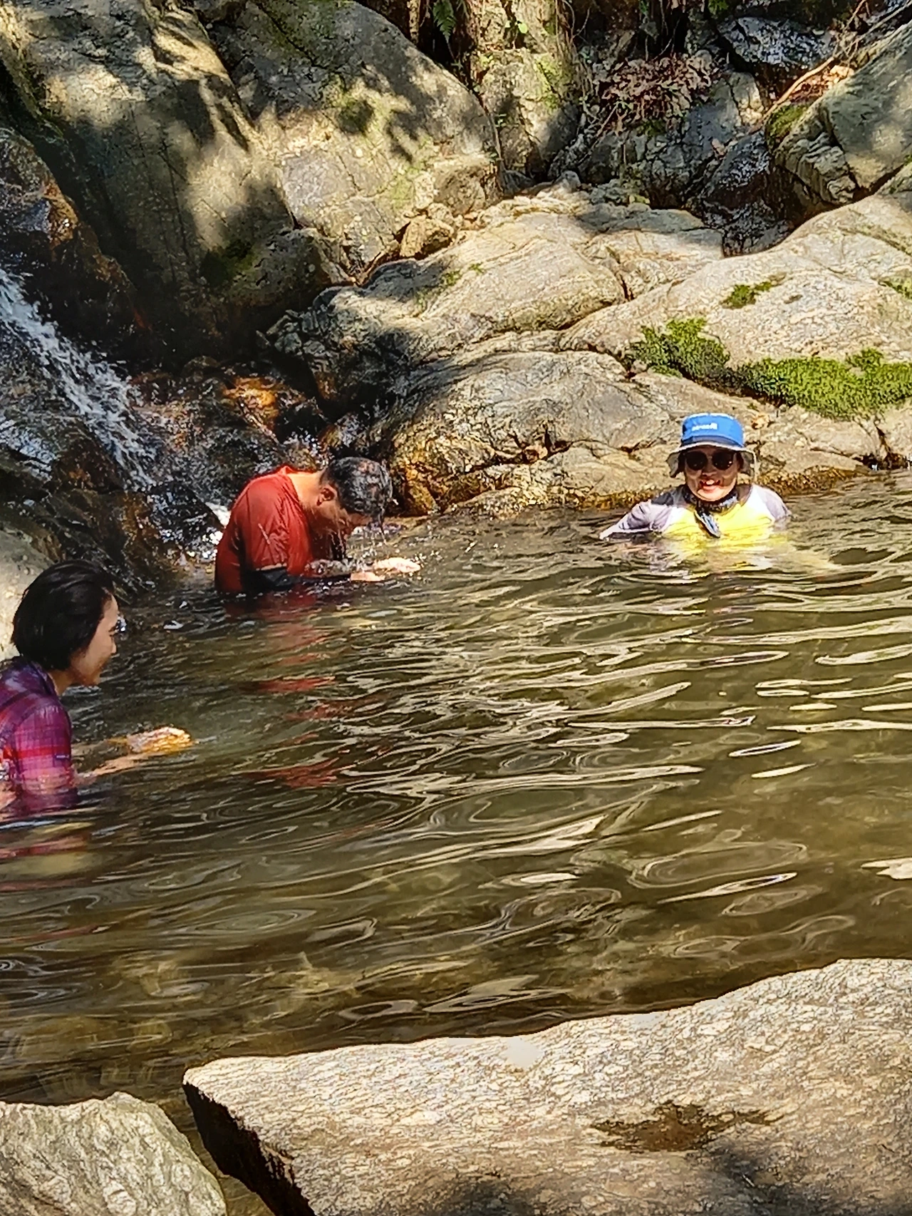 S고문님은 긴 바지 입고 오셔서 물속에 안 들어오시고, 5명 모두 옷을 입은 채로 물놀이를 즐긴다. 더위가 한방에 날아간다.