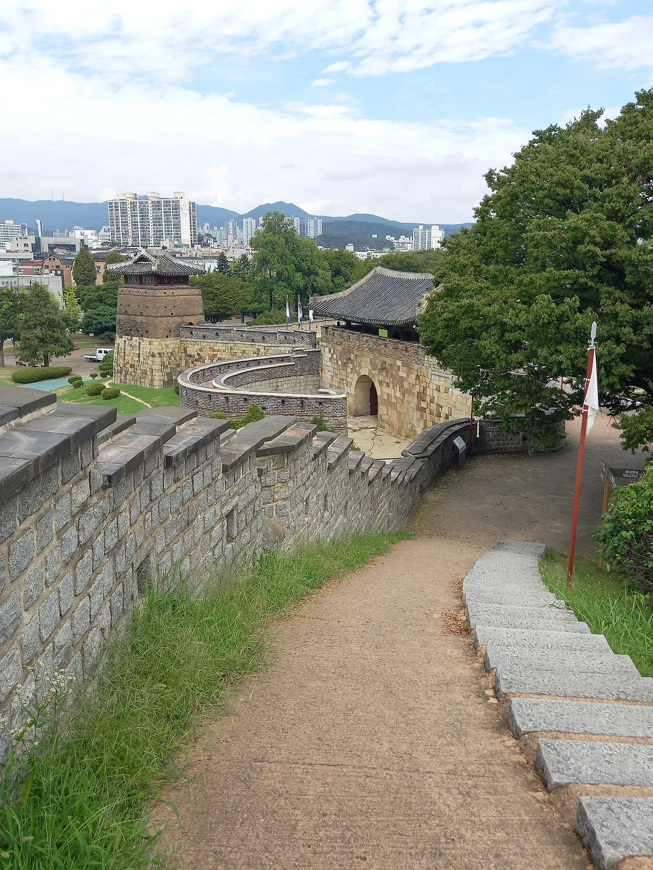 이번에 수원화성성곽길 풀코스를 걸으면서는 서장대 천장에 정조대왕이 쓴 시를 읽어보고, 동장대(연무대), 북수문(화홍문), 남수문(팔달문) 등 원래 내가 알고 있던 이름과는 다른 이름들이 더 있다는 걸 알았다. 또 동북공심돈과 쌍을 이루는 서북공심돈이 있다는 것, 장안문 옆에 반달 모양의 북옹성 등 새로 알게 된 것들이 많다. 같은 길을 여러 번 걸으면 이렇게 전에 보이지 않던 것들이 눈에 띄어서 좋다. 또 가면 잠자고 있던 어떤 것들이 깨어날지 궁금하다.