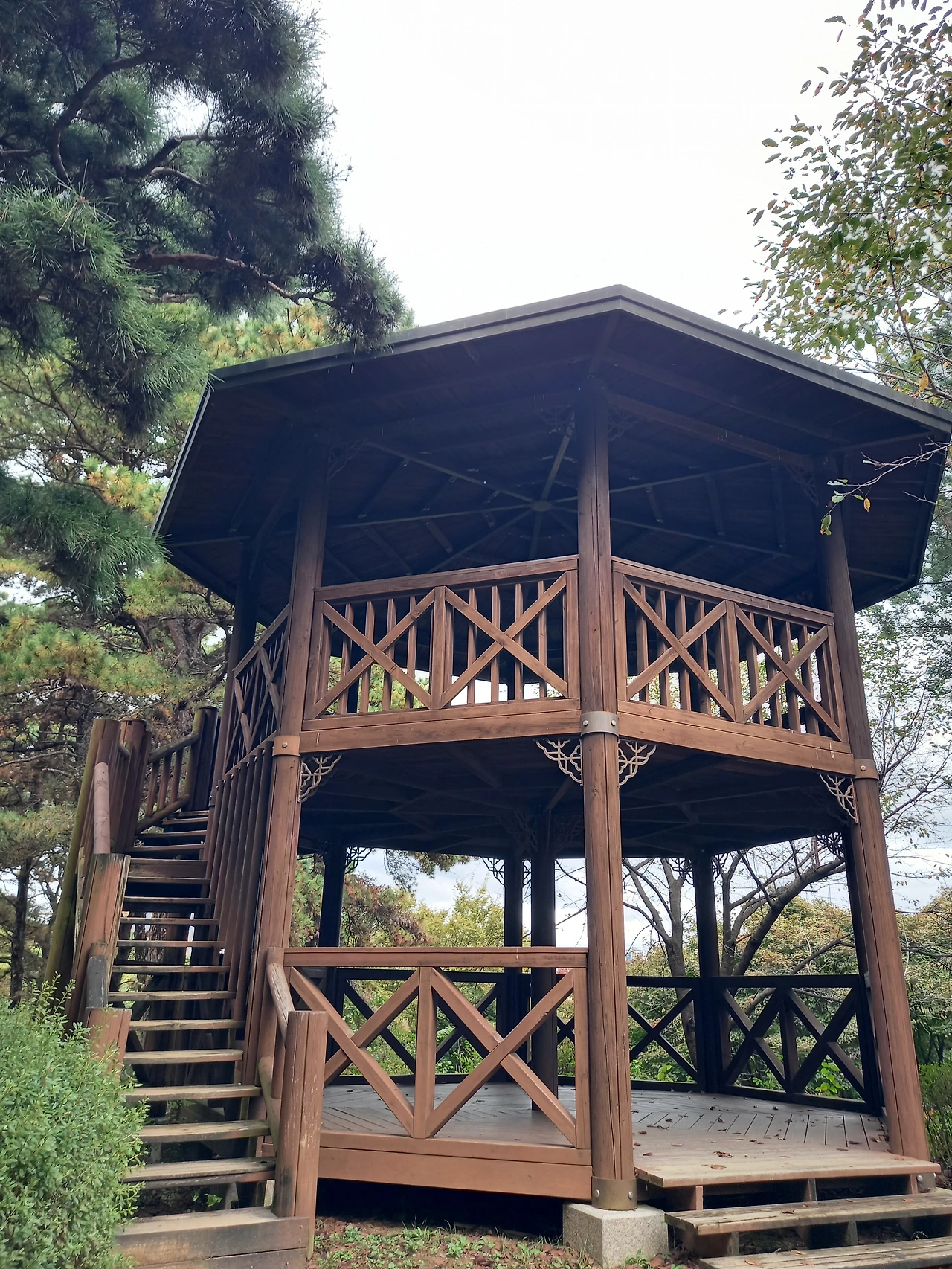 전망대에 가면 뭐가 한눈에 보이는 게 있으려나 했는데 올라가 보니 조망이 별로다. 소나무가 우거진 쉼터가 한눈에 내려다보이는 정도랄까?
