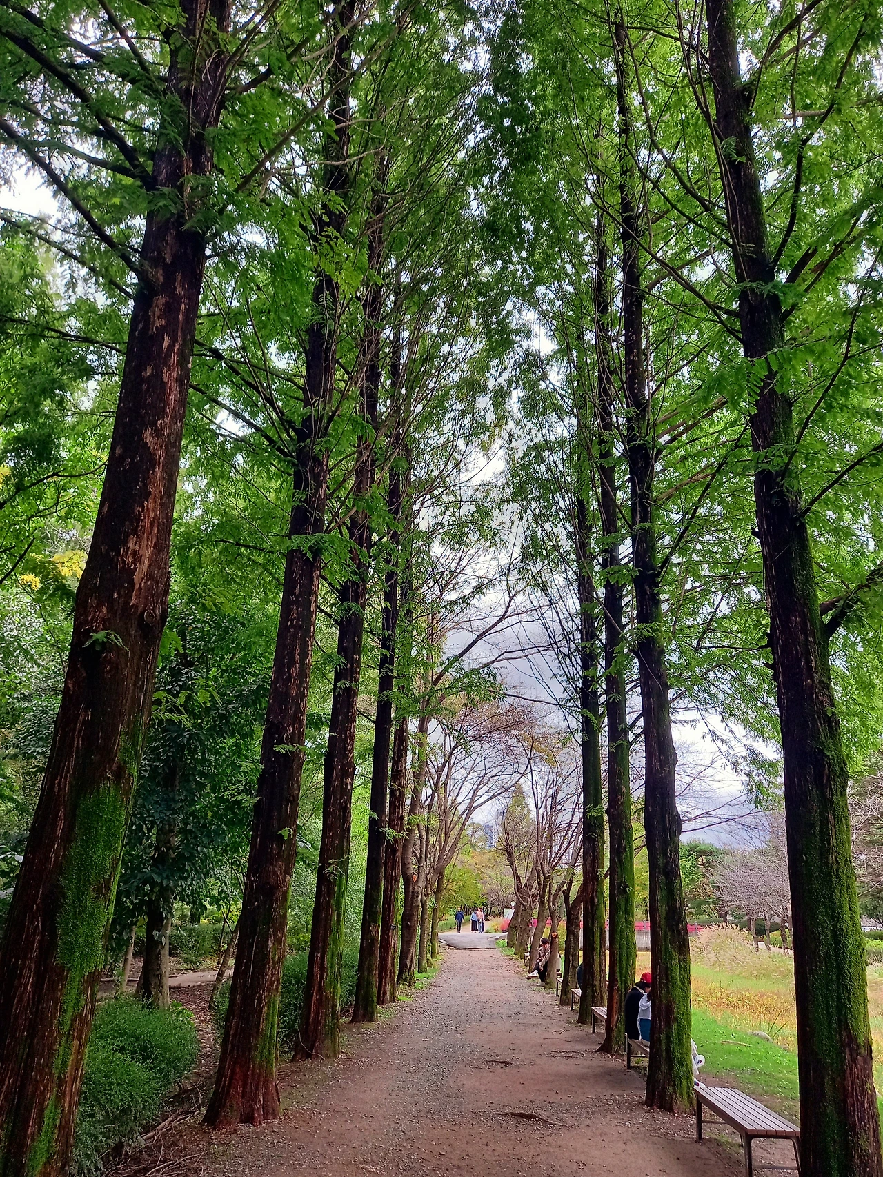메타쉐콰이어 길에는 유모차에 어린아이를 데리고 나온 젊은 부부들이 돗자리를 깔고 앉아서 놀고 있다. 키 큰 나무를 배경으로 사진을 찍고 싶은데 사람이 너무 많아 영 좋은 장면이 안 나온다. 한참 기다렸다가 겨우 한두 장 찍고 오른쪽 길로 들어선다.
