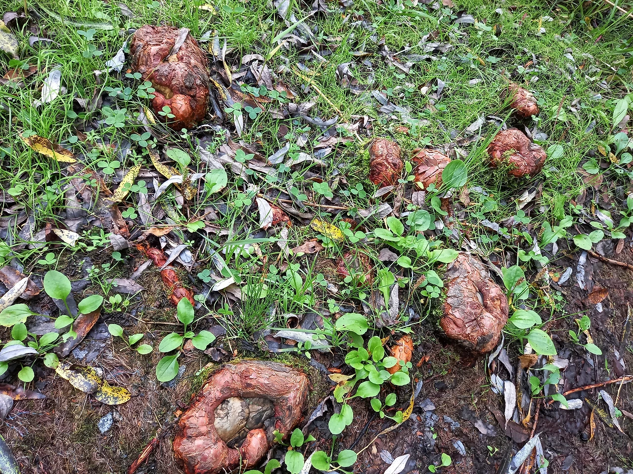 다시 수생식물원이다. 호수를 한 바퀴 천천히 돌아본다. 위에서 내려오면 호수 가까이 빙 둘러서 길이 있다. 길이 역시나 젖어있다. 그래도 아랑곳하지 않고 걷는다. 소나무 뿌리에서 줄기가 올라오려고 동그랗게 힘을 모은 것들이 눈에 띈다. 꼭 구근 뿌리 같아 보인다. 곧 싹이 틀 태세인데 추워지면 어쩌려나 싶다. 아니다. 눈비 추위에 더욱 단단해져서 내년 봄에는 싹이 나서 줄기가 올라올 수도 있겠다. 이것이 궁금해서 내년 봄에 다시 와 봐야겠다.