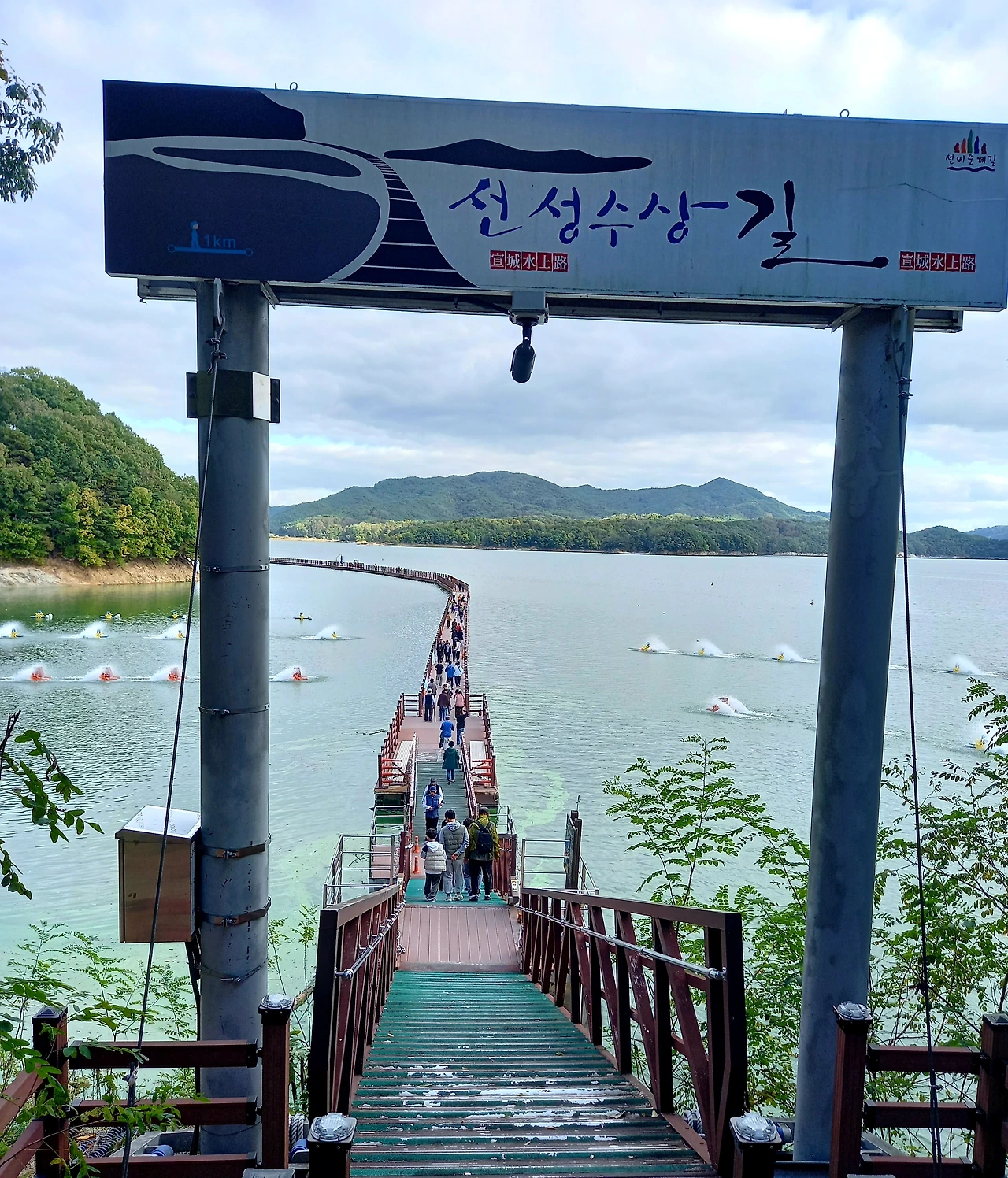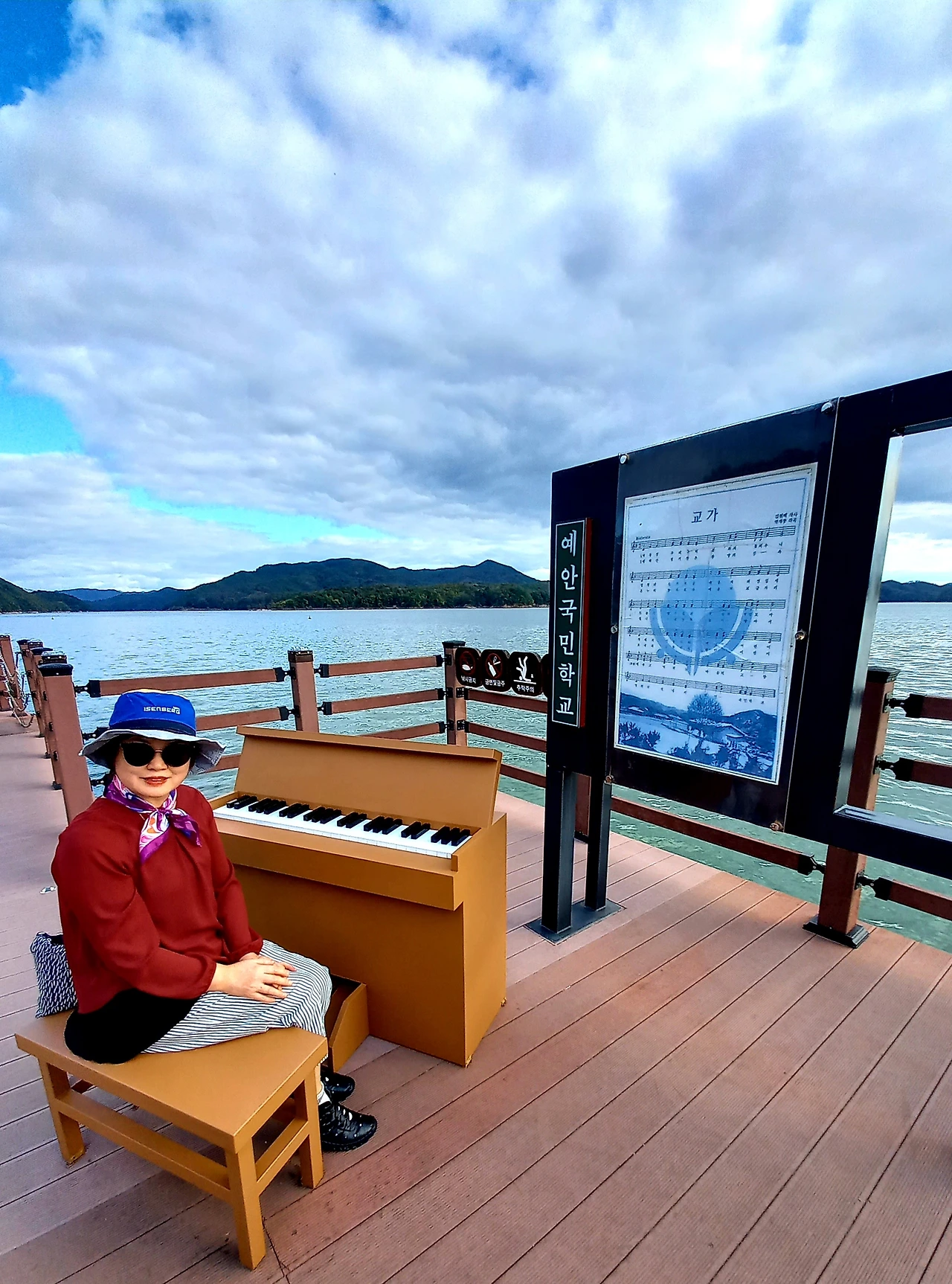선성수상길은 안동댐이 만들어지면서 수몰된 지역에 대한 가슴 아픈 사연이 있다. 어느 날 보니까 안동댐이 만들어졌단다. 안동시장도 모르고 안동시민도 모르게 안동댐이 건설되었단다. 그때에는 그런 시절이었다. 위정자가 마음만 먹으면 무슨 일이라도 할 수 있는 시절 말이다. 그곳에 있던 마을과 초등학교가 모두 물에 잠겼단다. 선성수상길 한가운데쯤에 예안초등학교 자리를 표시해 두었다. 피아노도 있고 당시 마을과 학교 사진도 붙어 있다. 피아노 위에 앉아도 보고 포토존에서 사진도 찍어본다. 실제 이곳에서 학교를 다녔던 이들은 고향과 모교를 잃은 아픔에 어쩌면 이곳을 찾지 않을지도 모른다는 생각이다. 그저 외지인들만이 선성수상길이 예뻐서 찾아와 걸어보면서 그들의 옛이야기 속에 잠긴 추억을 꺼내보는지도 모르겠다.