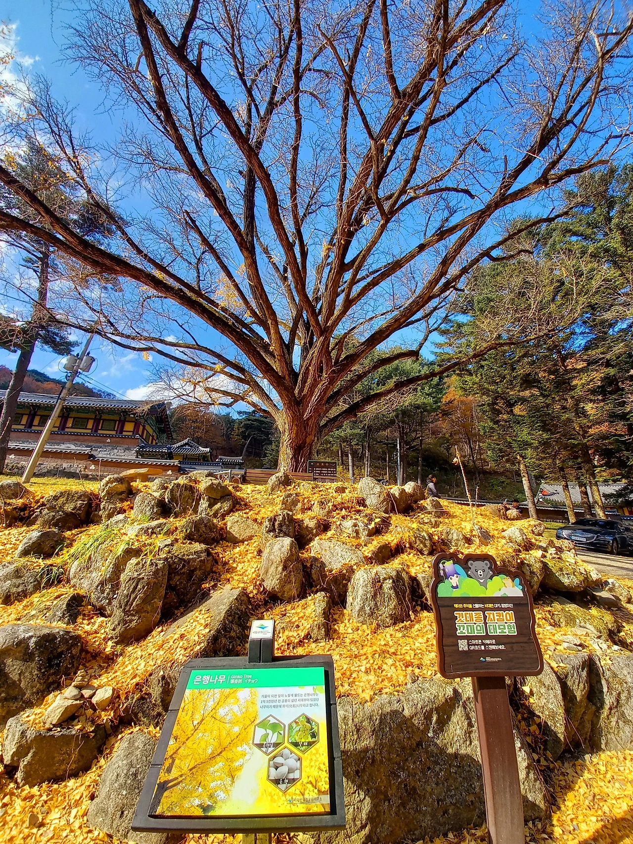 황장목 숲길 중간쯤에는 치악산을 360도로 조망할 수 있는 한을 카페가 보이고, 구룡사에는 200년 된 은행나무 보호수가 있다. 절을 볼 사람은 보고 세럼폭포까지 갔다 올 사람은 다녀오면 된다. 치악산국립공원 주차장에서 구룡사까지는 약 1km, 구룡사에서 폭포까지는 약 2,2km라니까 합하면 왕복 6.4km이다. 나는 걸음을 조금 빨리해서 세럼폭포까지 다녀오기로 한다.