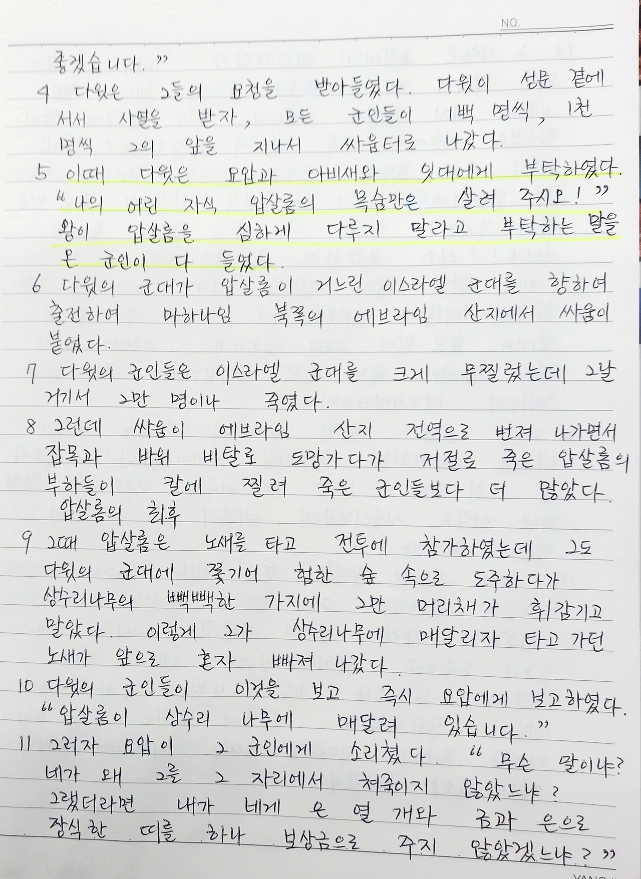 "싸움에서 이기더라도 아들 압살롬의 목숨만은 살려주시오."