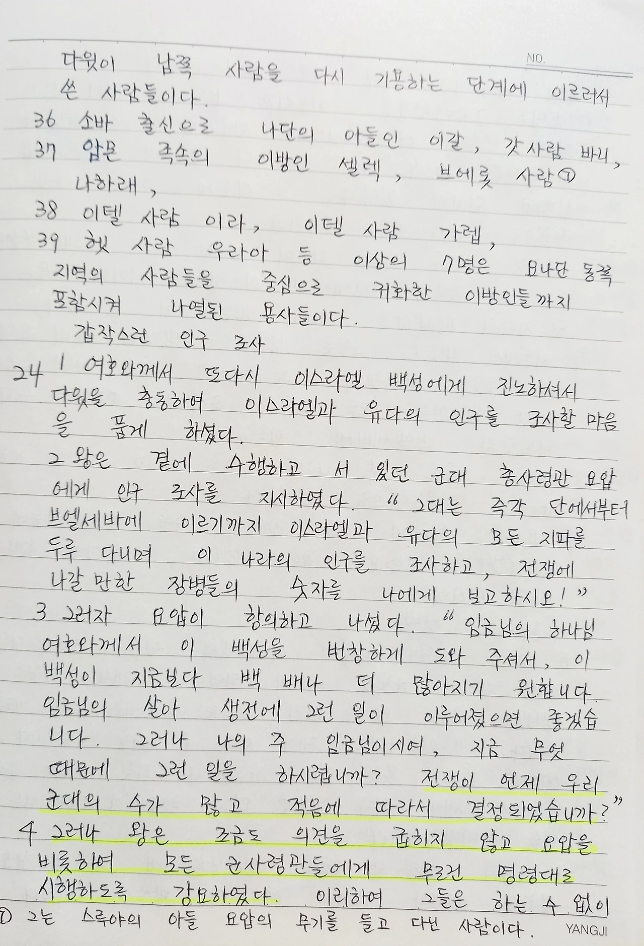 그런데 갑자기 인구조사를 한다. 싸움에 나갈만한 장정이 얼마나 되는지 궁금해서이다.