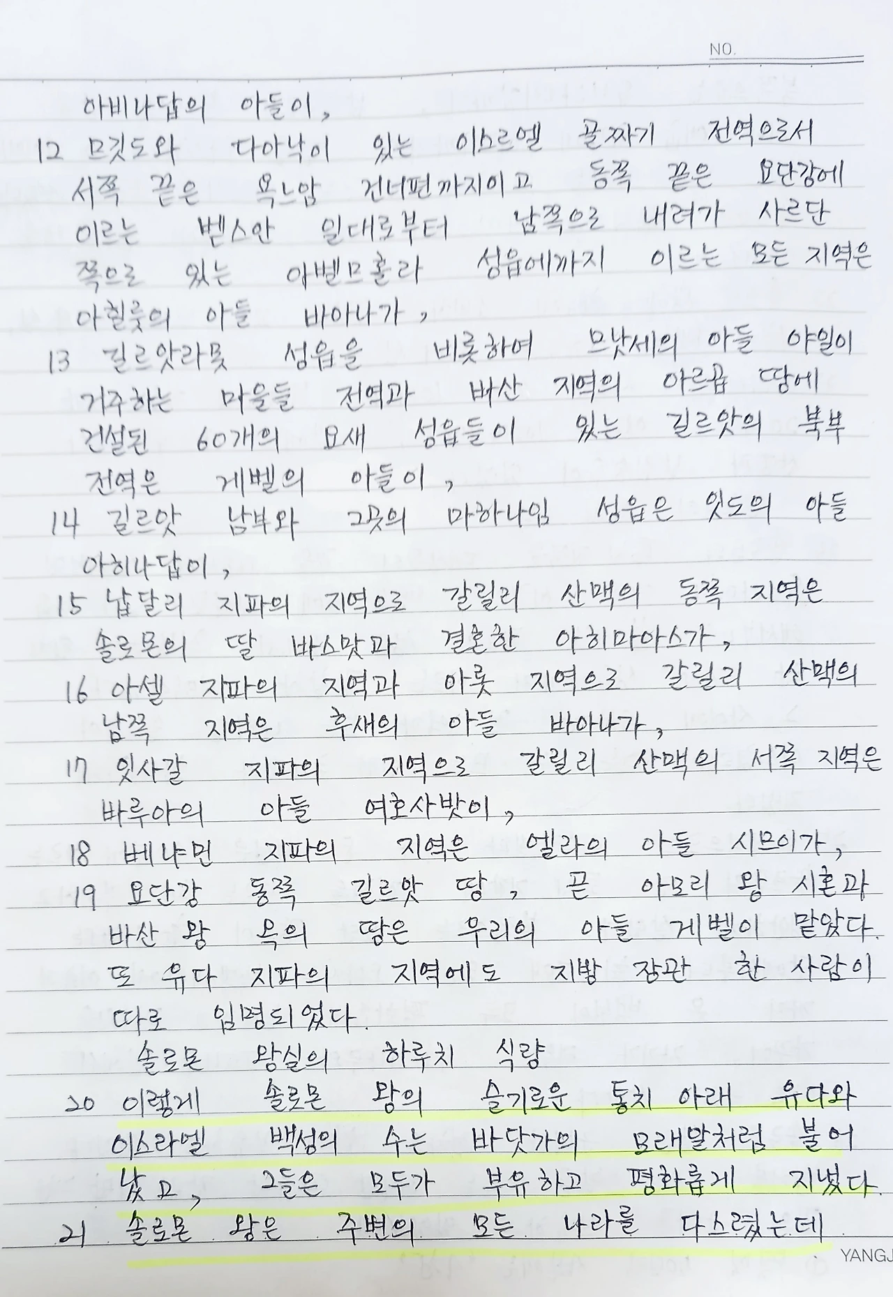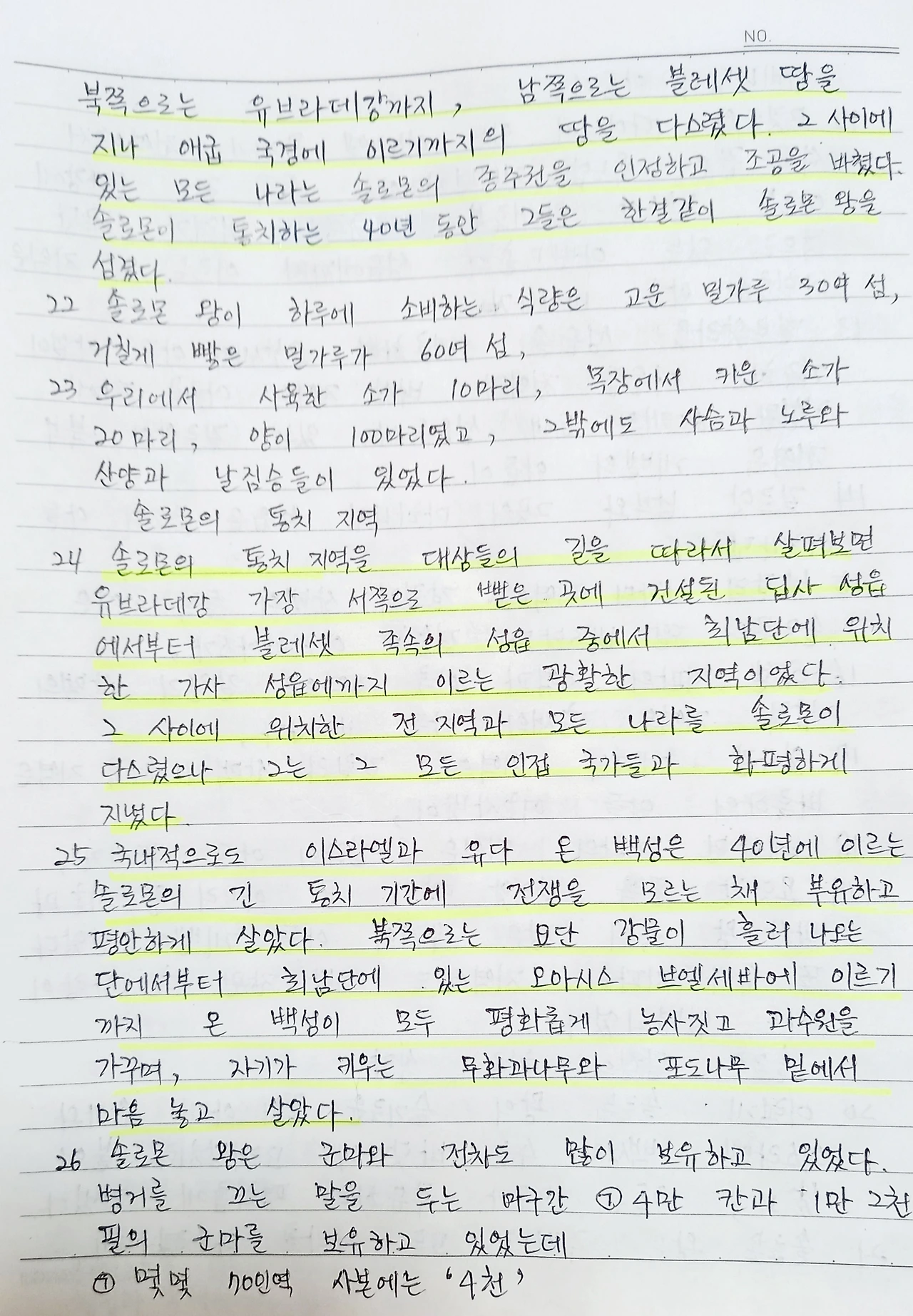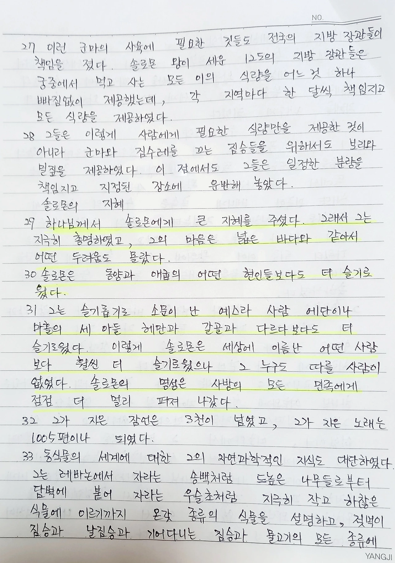 부디 우리나라와 세계 모든 나라들도 새로운 지도자는 국민 먼저 생각하는 솔로몬 같은 사람이 뽑혀서 지혜로 국민들을 통치하기를 바라본다. 그래서 국민들이 부유하게 전쟁 없이 평화롭게 살 수 있으면 좋겠다.