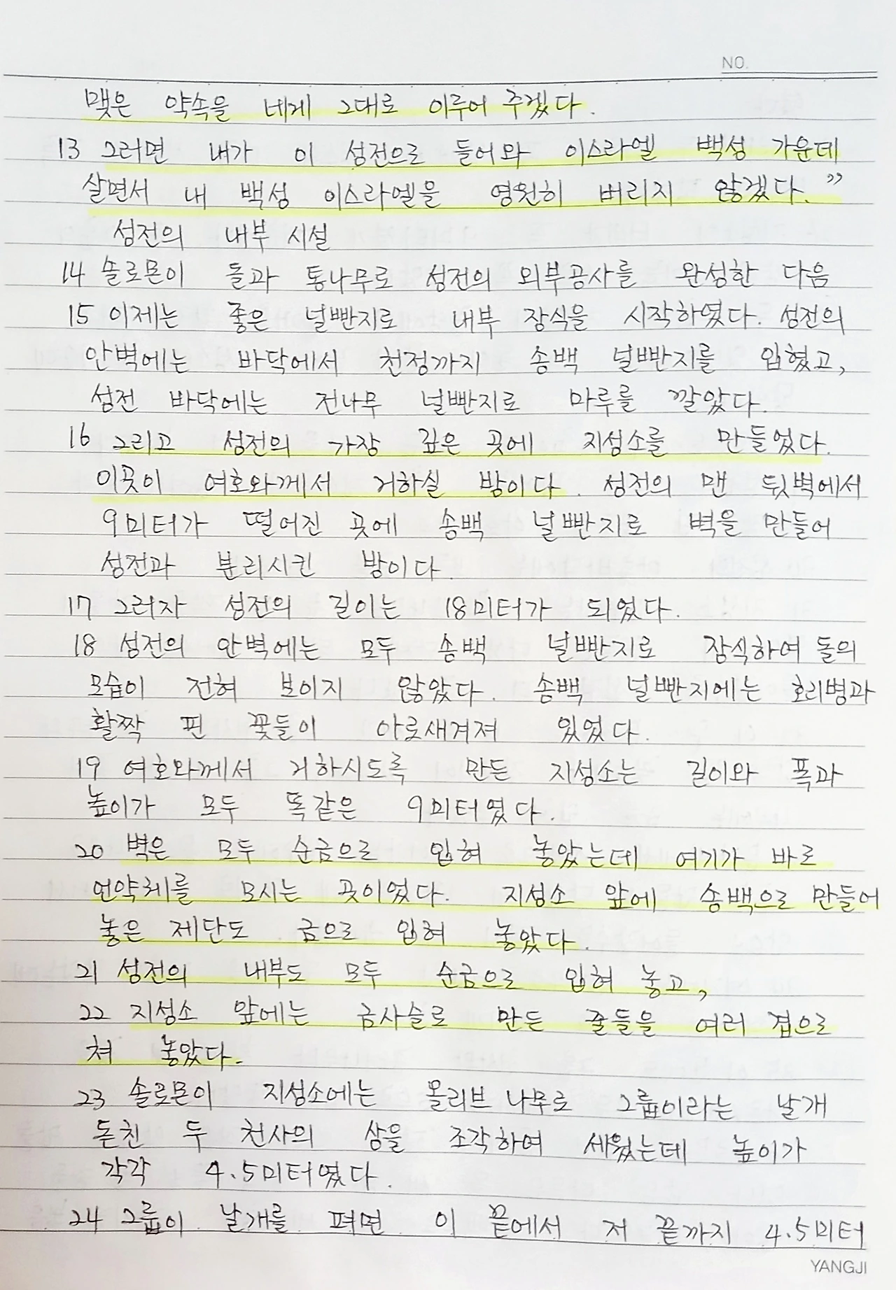 성전을 짓는데'연장을 쓰지 않는다'는 발상은 특별하다는 생각이다. 성전을 짓는 사람들이 하나님의 임재를 기원하면서 지었을 것 같다.