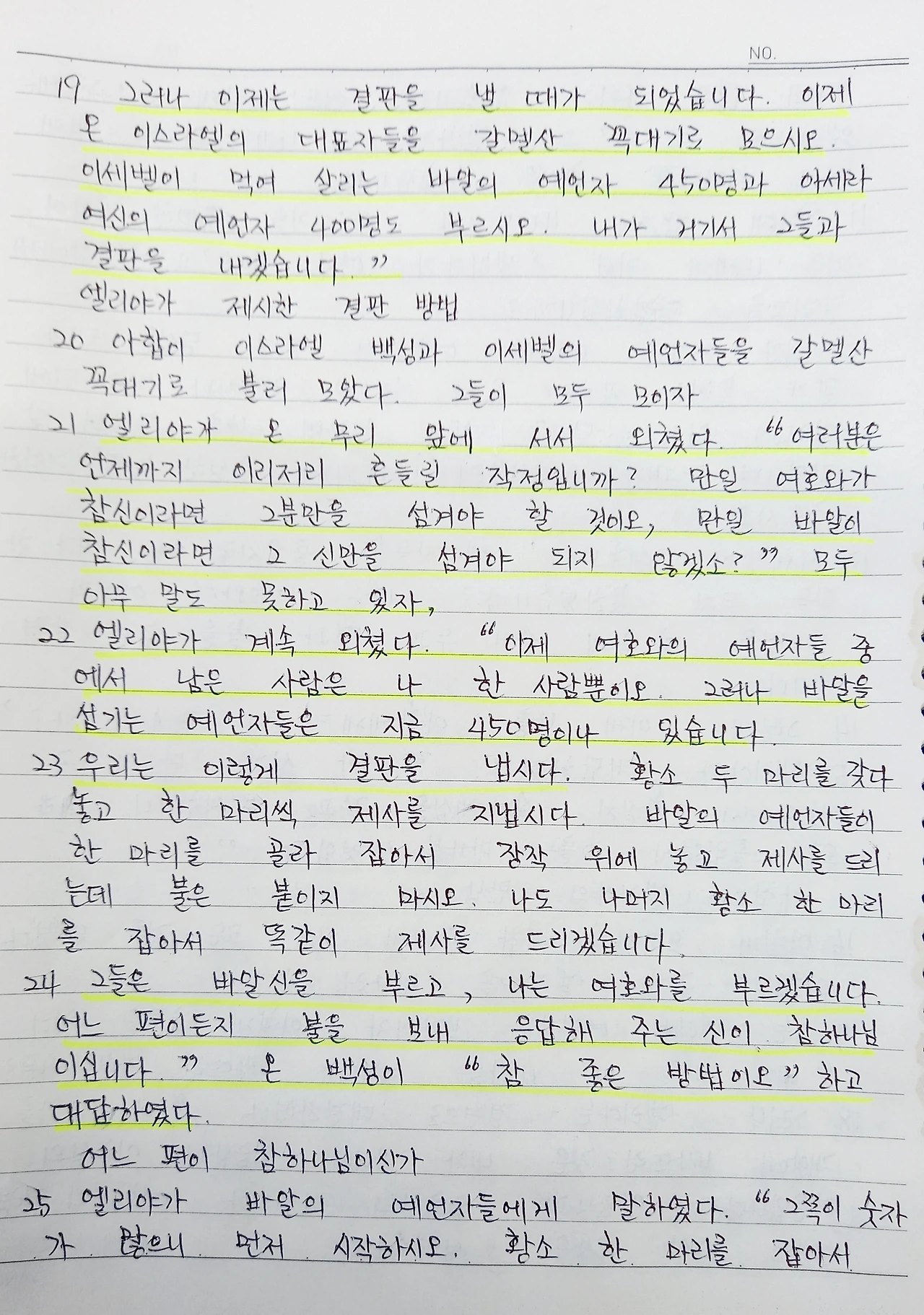 아합 왕과 엘리야 선지자가 만난다. 드디어 바알과 아세라 우상과 엘리야의 하나님 대결이 갈멜산에서 펼쳐진다.