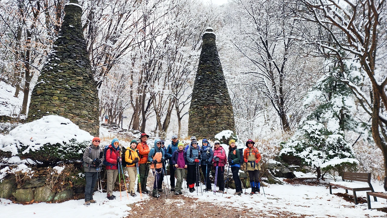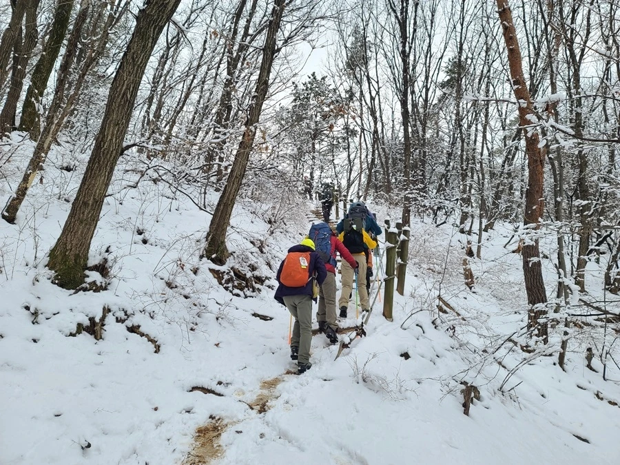 그렇지만 싱그러운 눈산행이라 행복감은 기대 이상이다. 산우님들도 많이 참석해서 눈길을 걷다가 여기저기서 환호성이 터져 나온다. 삼삼오오 예쁜 눈꽃 포토존을 찾아서 사진 찍는 재미도 쏠쏠하다.