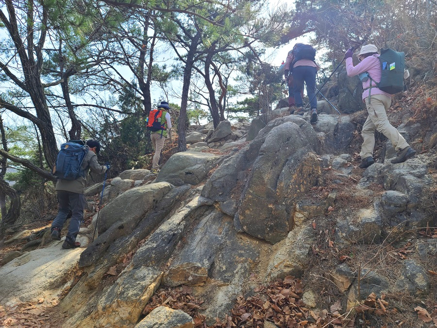본격적인 산행 시작이다. 길은 걷기 좋아 살방살방 걷는다. 그런데 어째 2주 전 왔을 때와는 전혀 다른 방향으로 가는 것만 같다. 오른쪽으로 가야 할 것 같은데 지꾸 왼쪽으로 간다. 내 방향감각이 그렇다. 그래서 그랬을까? 몇 번이나 걸은 산인데, 처음 가보는 것 같다.