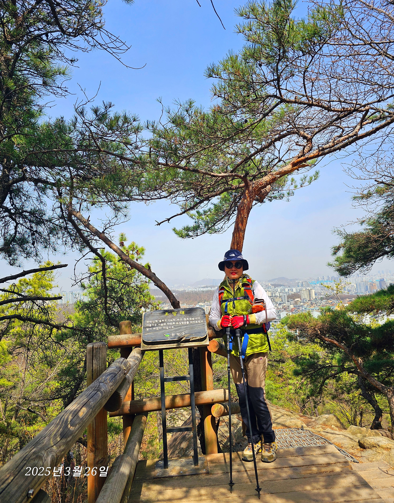 관악산 둘레길 안내도와 인헌공 강감찬길 이름표가 있는 곳에서 가파른 데크길을 올라간다. 정자가 나온다. 모두 모여서 별다섯 대장님 소개하고 서로 인사한다.