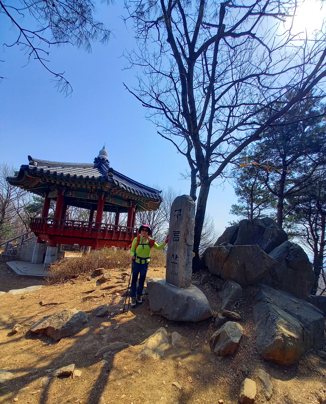 구름산 정상 가는 길은 무척 가파른 데크길이다. 우리는 그곳을 지나서 조금 완만한 오름길 로프구간으로 오른다. 나는 늘 오름길이 힘들어서 헉헉댄다. 구름산 정상 돌비와 정자가 멋지다.