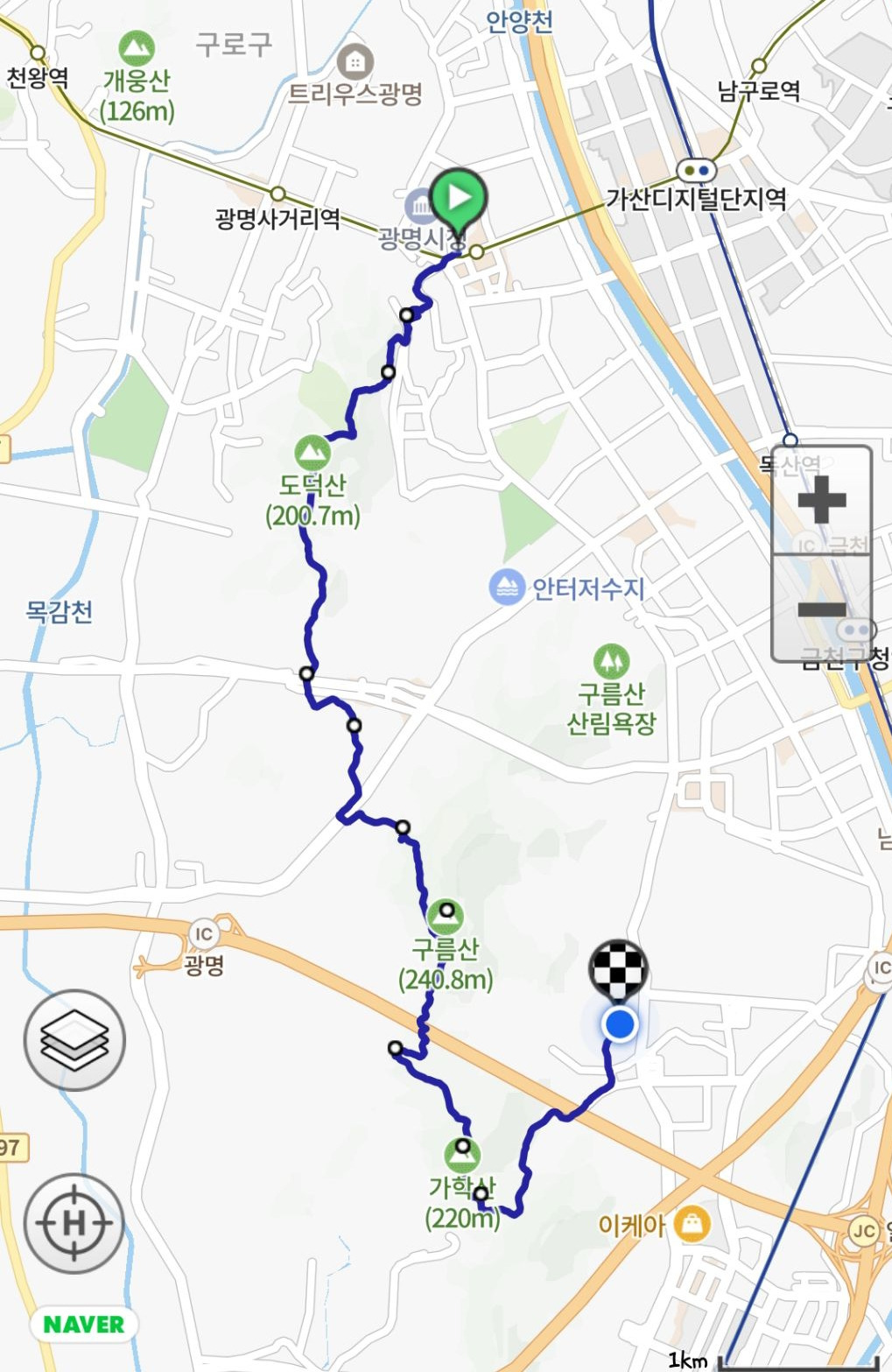 "광명 도덕산+구름산+가학산을 언제 다녀왔던가?"