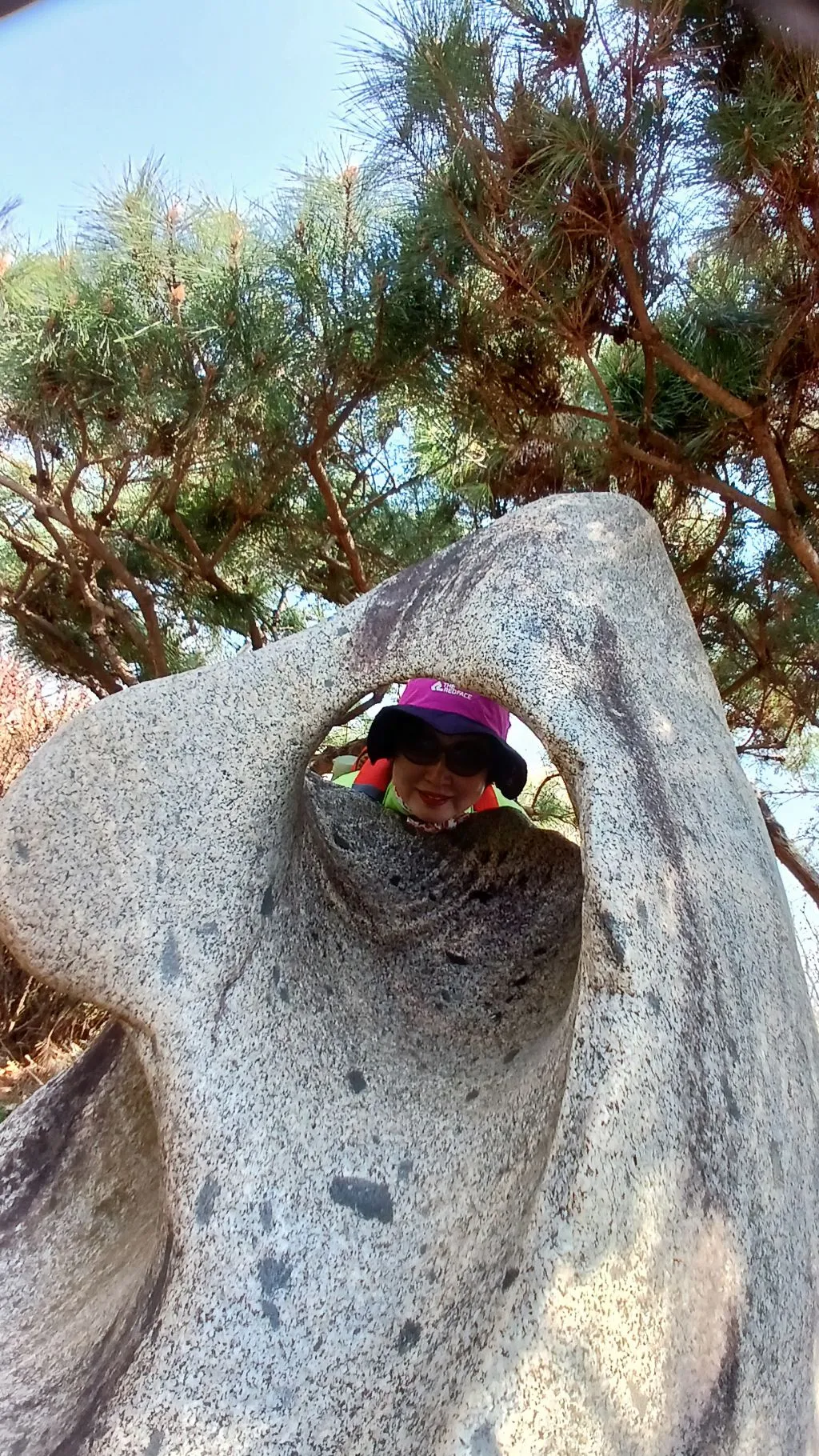 가파른 길 올라가 곧 도덕정에 도착한다. 계단에 서서 기념샷 찍고, 돌 얼굴 포토존에 개인사진들 찍고, 철쭉길을 지나간다. 철쭉꽃은 조금씩 망울만 맺혔을 뿐 꽃이 피려면 아직이다. 아마도 만개하려면 두 주일쯤은 지나야 하지 않을까 싶다. 날씨만 좋다면야 그전에라도 꽃이 활짝 벙글 수는 있겠다.