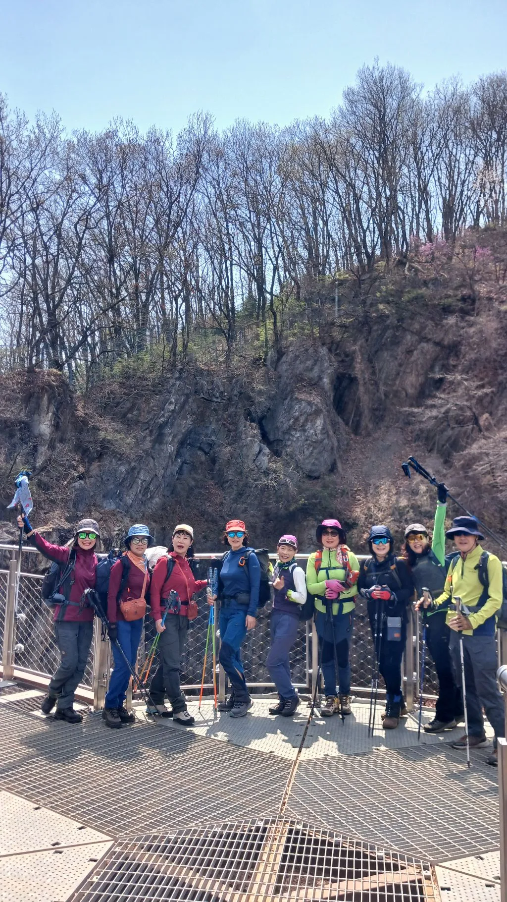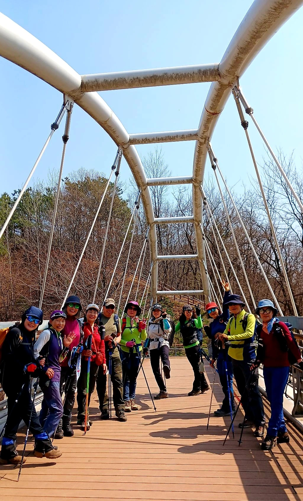 암튼 산행 인원은 7~8명이면 가족적이고 사적인 이야기들도 나눌 수 있고 모두를 다 만나 친해질 수 있어서 가장 좋다. 10여 명 내외이면 또 한 손안에 들어오는 인원이라 보폭에 맞는 사람들끼리 자연적으로 두세 팀 정도로 나누어져 앞서거니 뒤서거니 하면서 걸을 수 있어서 좋다. 참석 인원이 20명, 30여 명 되다 보면 리딩하시는 대장님 혼자서는 통솔이 어려워서 선두, 중간, 후미 대장님들이 세워진다. 그래도 함께 한다는 기쁨은 크다.