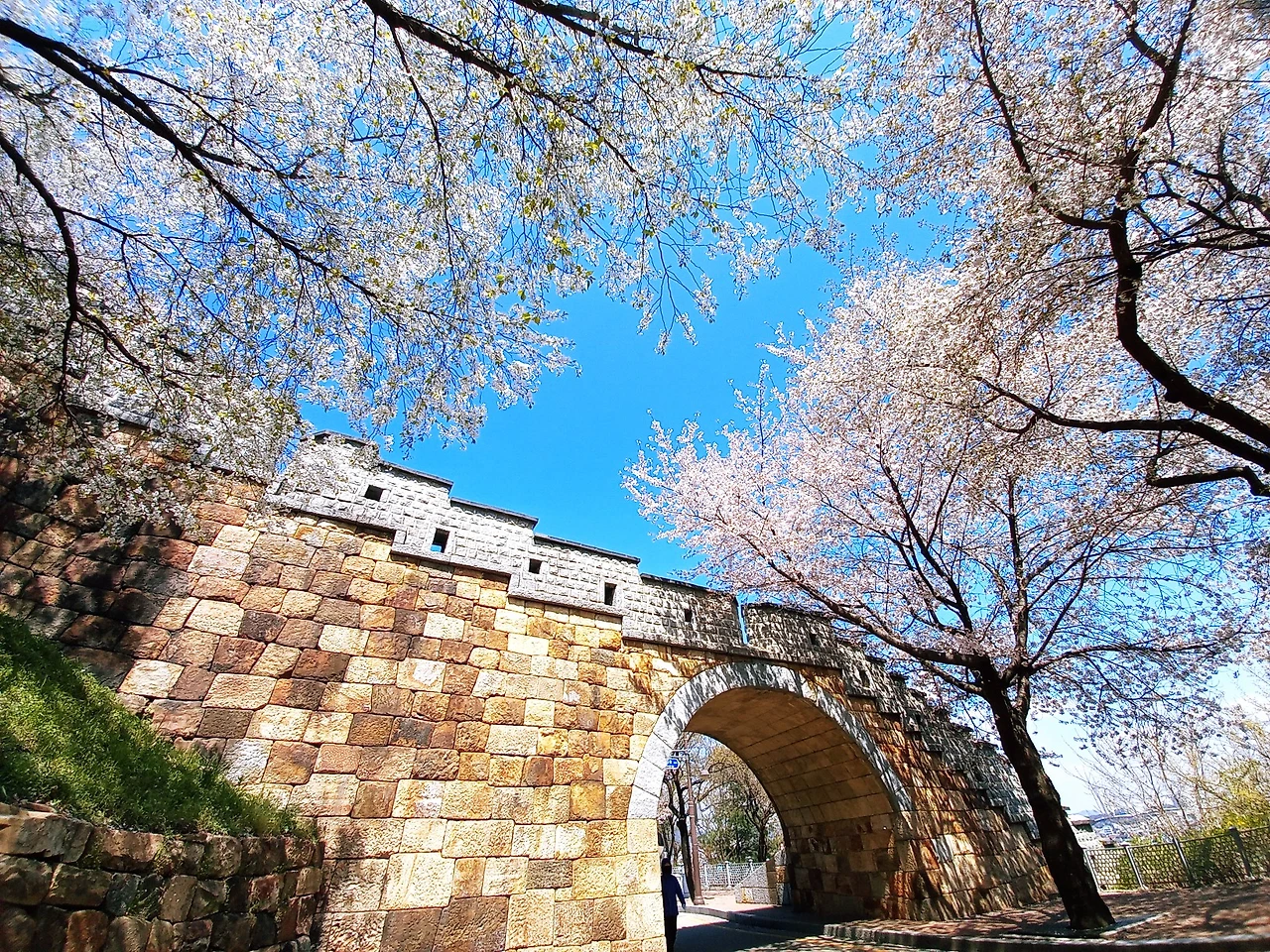 둘이서 셋이서 온 분들이 벚꽃이 예쁜 곳에서 사진을 찍는다. 나도 기념삿을 부탁한다. 팔달산 벚꽃길은 집에서 도보로 20여 분 거리이다. 해마다 놓치지 않고 가까운 곳에서 벚꽃을 볼 수 있어서 행복이라 여긴다. 벚꽃길 한 20여 분 걷고 수원화성곽길 따라 팔달문 쪽으로 내려온다. 재래시장에서 장도 보고 집으로 돌아온다. 가방도 마음도 흡족하게 채워진다.