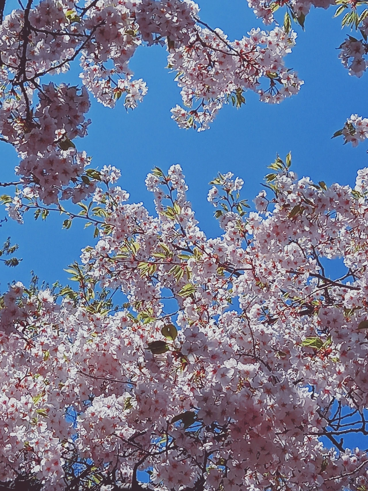 오전 10시~12시까지 열심히 매화를 그리고, 난초 체본을 받아 들고 도서관을 나온다. 팔달산 벚꽃길로 들어선다. 사람도 그리 많지 않고 외국인 관광객들만 드문드문 보인다. 꽃이 떨어진 자리에 초록 잎들이 싱그럽다. 하늘을 향해 고개를 들어보니 연분홍 벚꽃과 파란 하늘과 초록잎들이 환상의 하모니를 이룬다.