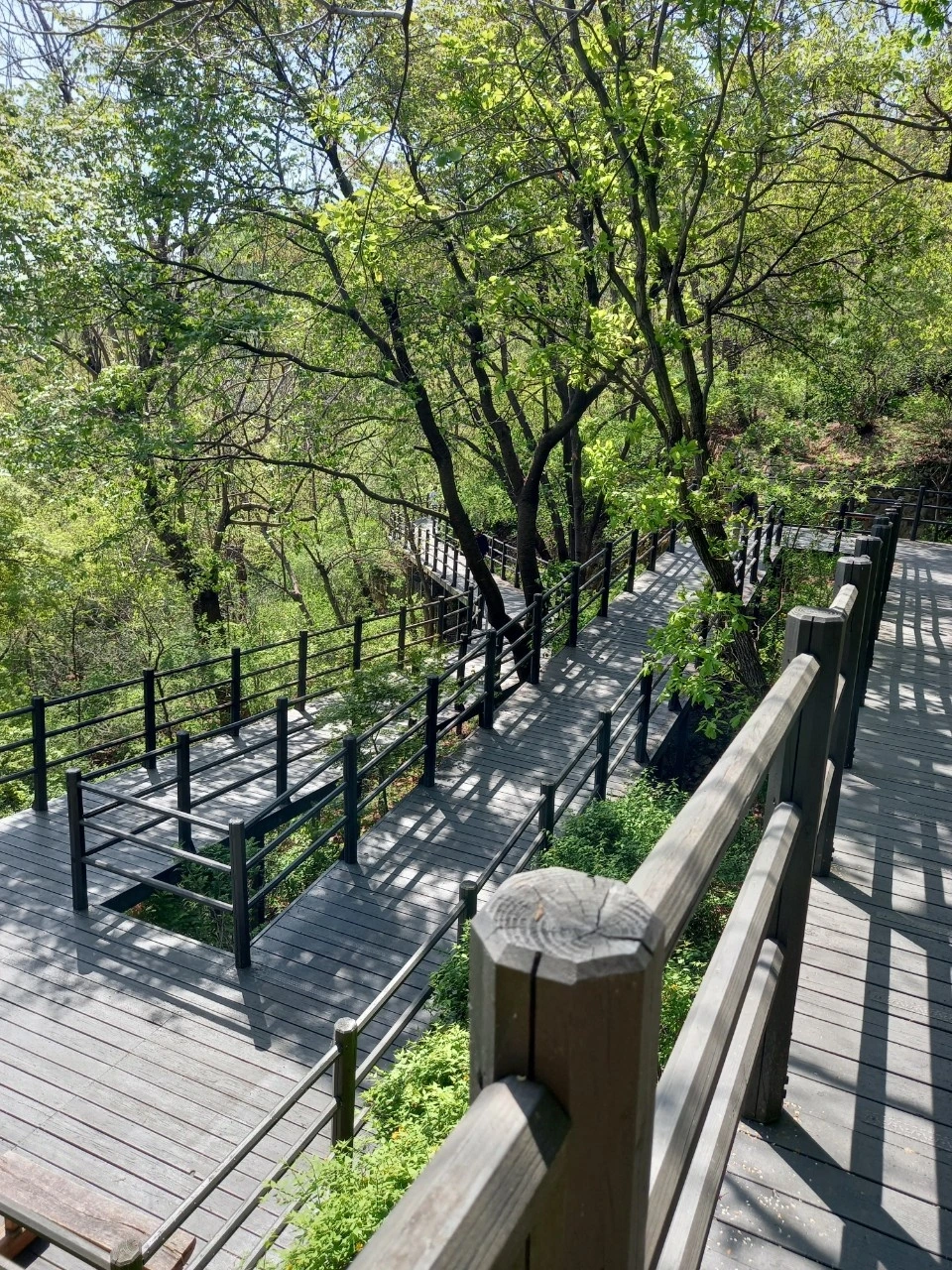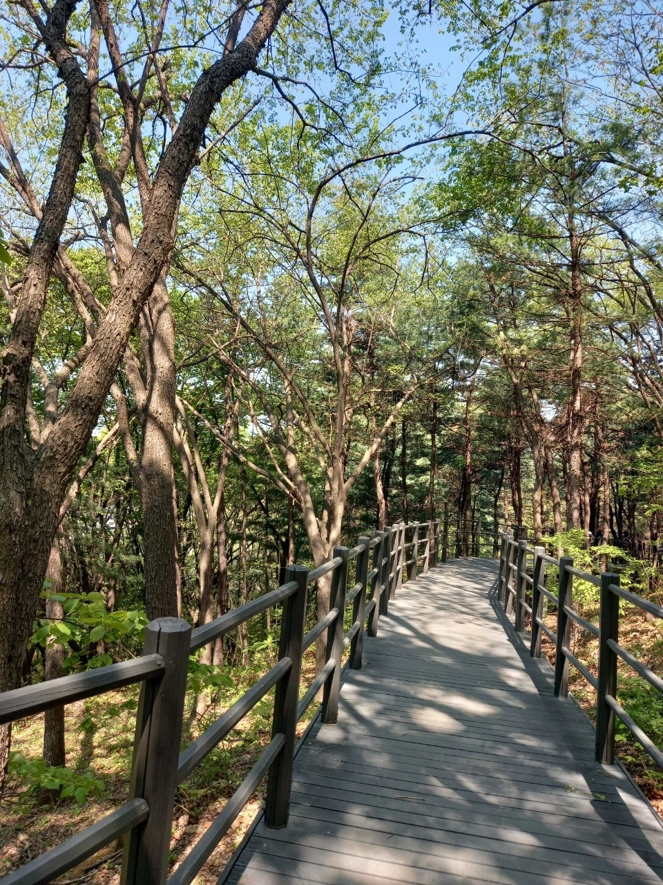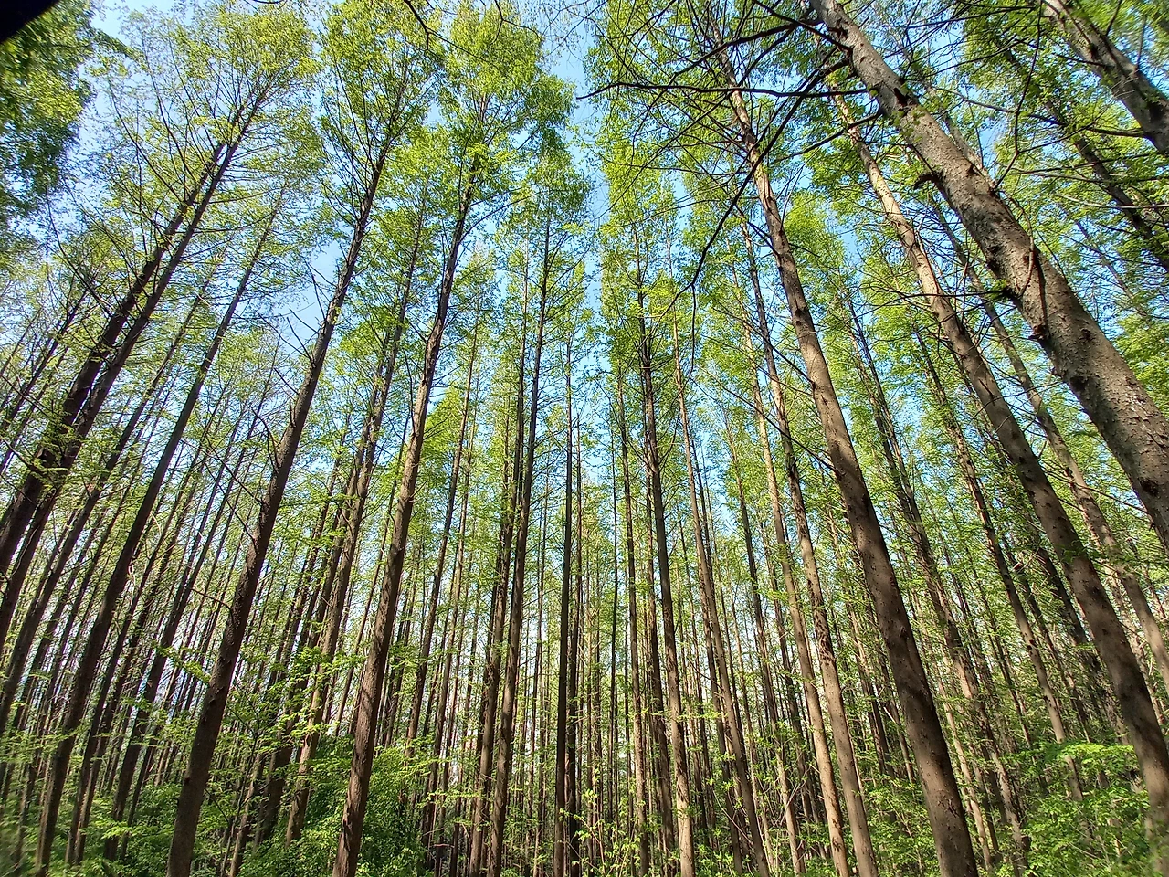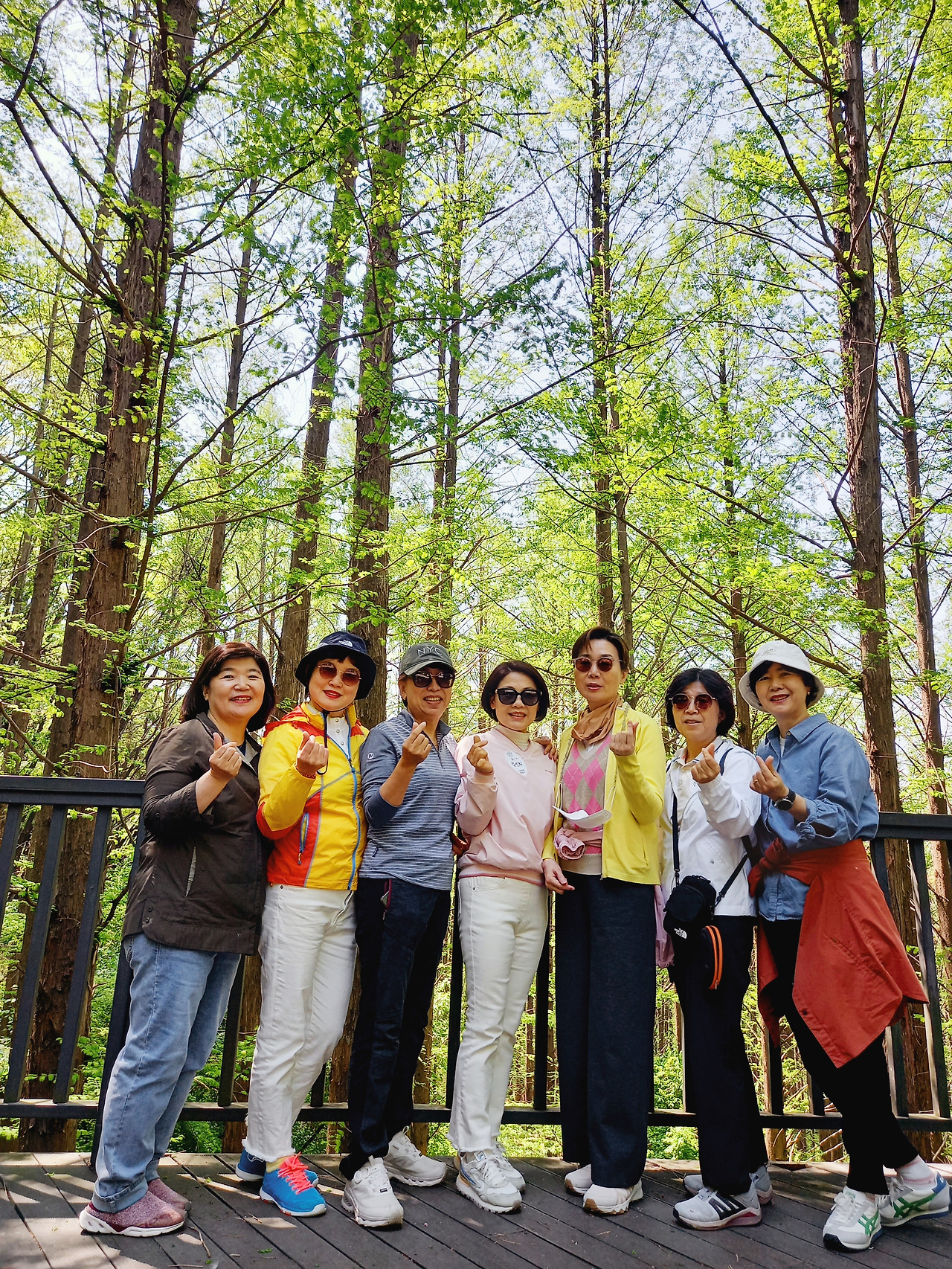 곧 잣나무숲길 지나 메타쉐콰이어길이다. 울창한 숲 나무들이 하늘로 쭉쭉 뻗어서 그늘을 만들어주고 기이한 멋을 풍겨낸다. 아낌없이 나눠주는 피톤치드 흠뻑 들이마시며 풍경에 매료된다. 울긋불긋 가을 단풍 든 숲길도 낭만적인데, 온통 초록으로 향기를 발하는 봄 숲길은 더 생기가 가득하다. 그저 걷는 것만으로도 몇 년은 젊어지는 듯하다.
