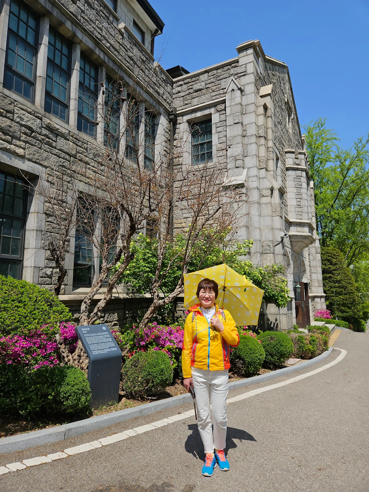 다 마치고 경영대학 60주년 기념홀 이름표에서 기념사진 남기고 울 동기들은 따로 교정을 산책한 후 본관 지나 ECC관으로 간다. 차를 마시기 위해서이다. 우리가 학교 다닐 때 수업을 했던 본관은 항상 정겹고 고풍스럽다. 앞에 철쭉이 예뻐서 감상하고 <닥터 로빈>으로 간다. 끼니를 위한 건강한 음식도 먹을 수 있고, 커피와 차도 마실 수 있다. 아이들 결혼 이야기, 유학 이야기, 신혼 이야기, 손주 이야기 등 사는 이야기들이 재미있다. 다음 모임 날짜를 대략 물어보고 투표를 진행할 거란다. 5월 개교기념행사에는 여고 모임과 겹쳐 참석이 어렵겠고, 6월 모임에나 얼굴을 또 볼 수 있겠다. 이경인으로서 건강을 위해 함께 걷고, 이경 21기 동기로서 정겨운 이야기가 이어지는 오늘도 감사가 넘치는 날이다.