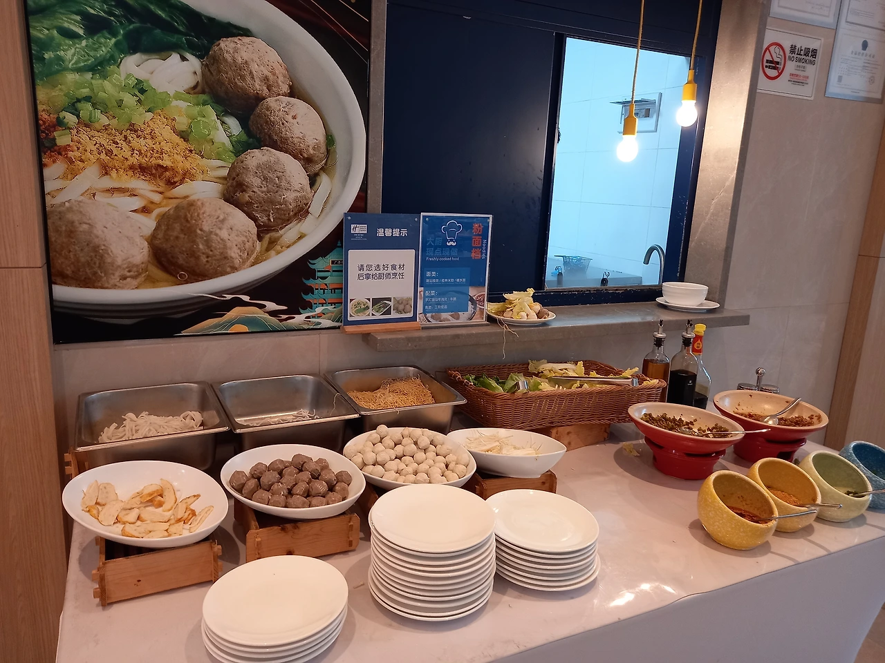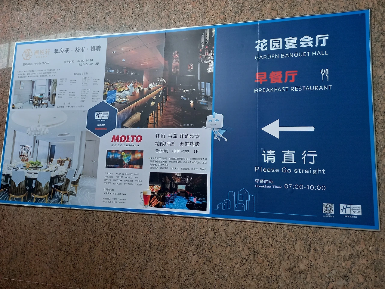 식당은 2층에 있다. 우리가 묵고 있는 8층에서 2층까지 네모난 로봇이 들어와 층별 안내를 한다. 사진을 찍어야 했는데 신기해하는 동안 로봇이 내려버려서 그만 놓치고 만다.